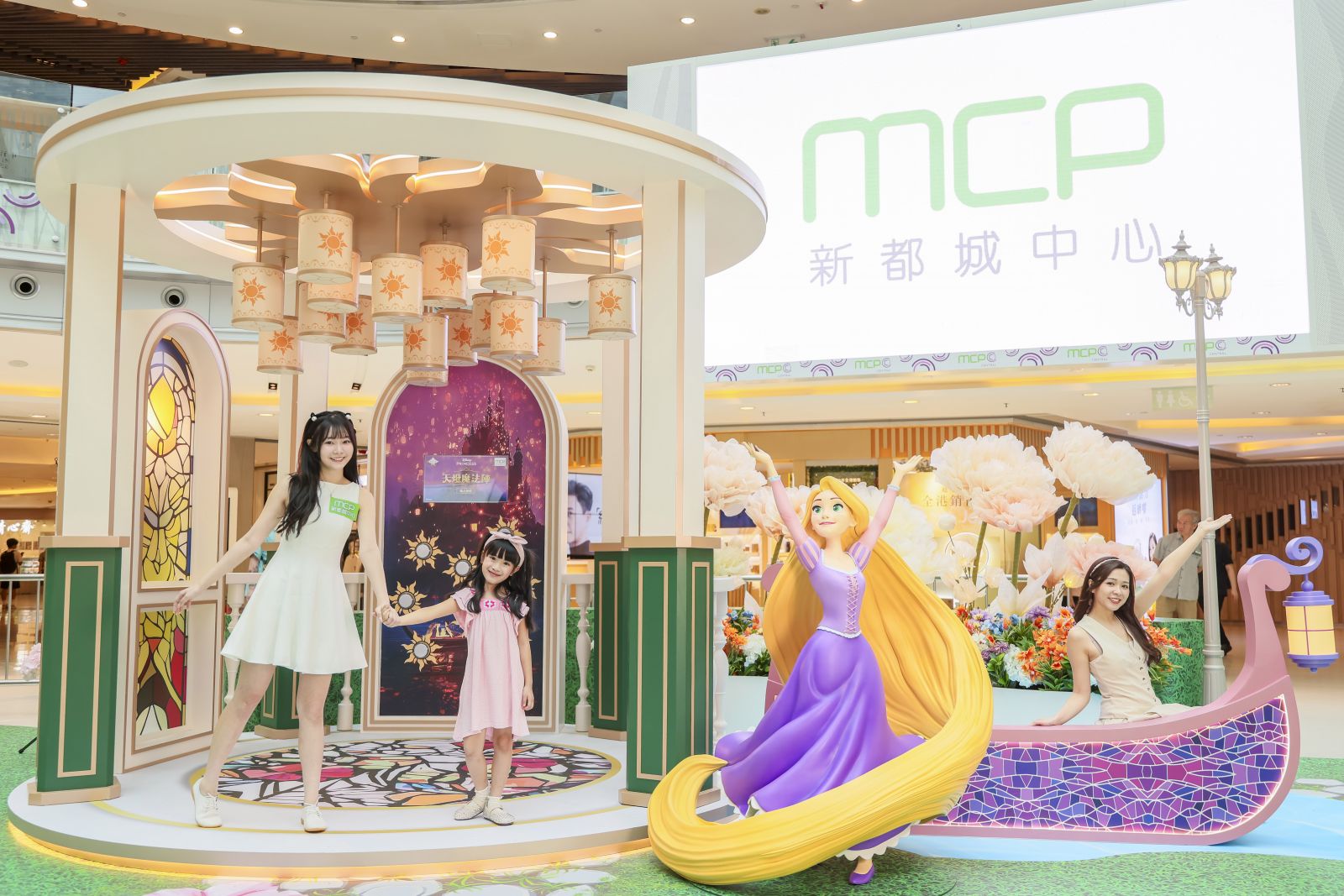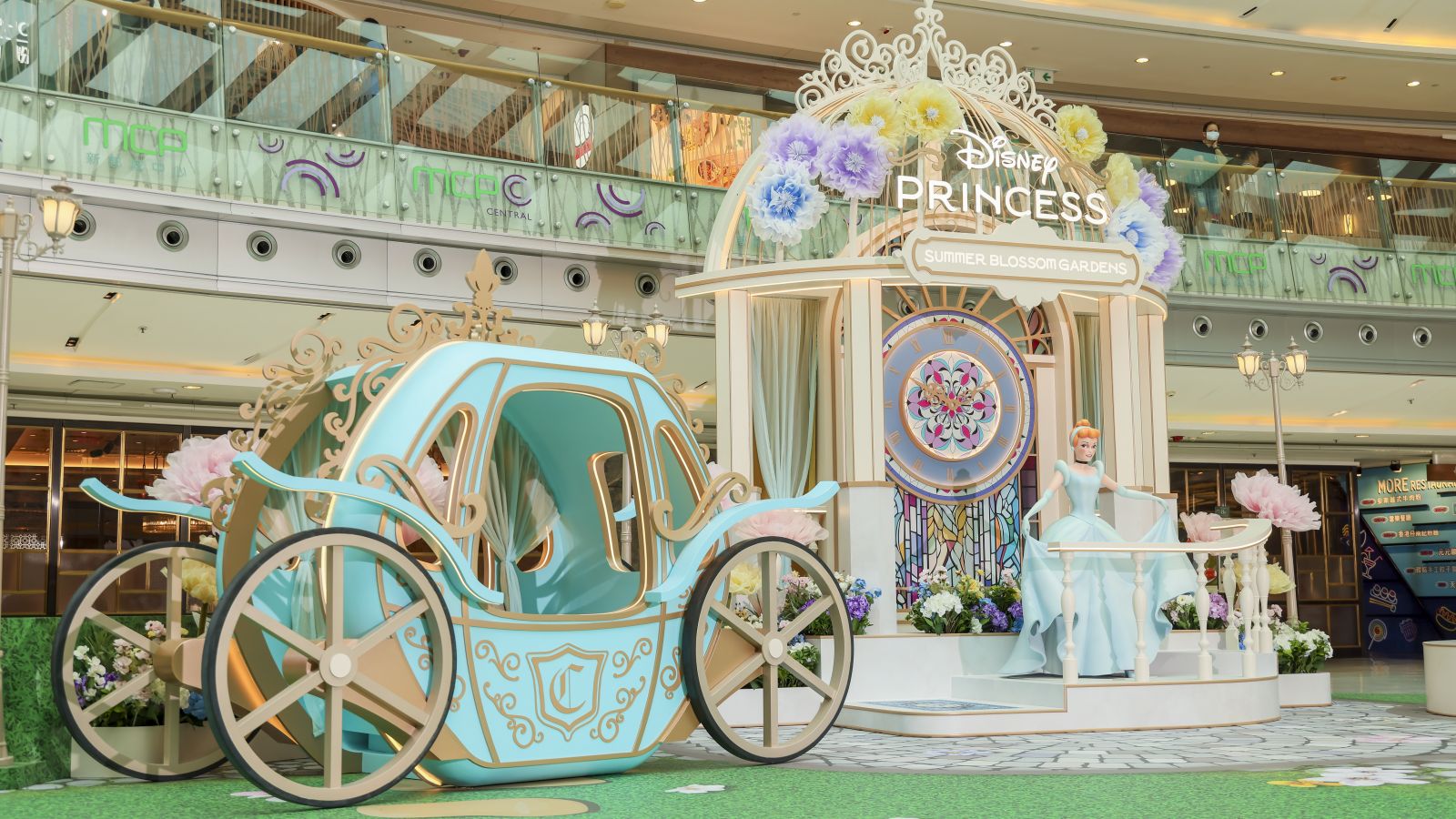MCP CENTRAL(新都城中心2 期)由6月22日至8月17日期間,迪士尼公主裝置華麗降臨MCP,打造全港首個以逾5,000 朵精緻仿真花藝設計的「迪士尼公主仲夏花園」,完美綻放四位公主的獨特魅力。仲夏花園內有6大精心設計的花藝場景:灰姑娘的6米高的浪漫仙履庭園、巨型絢彩花藝玻璃鞋、1:1經典魔法南瓜車、《魔髮奇緣》長髮公主樂佩的浪漫小船、《小魚仙》艾莉奧公主的幻彩珍珠仙境和《阿拉丁》茉莉公主的炫光飛天魔毯,感受四位公主傳遞的正能量。