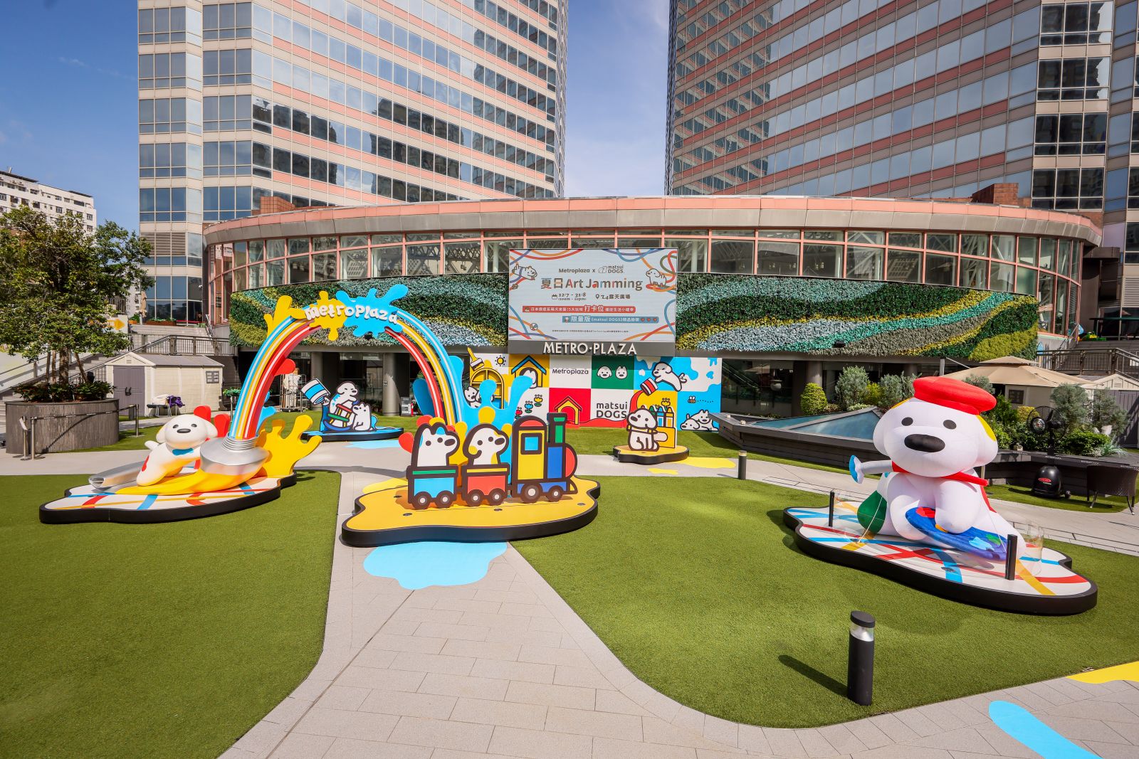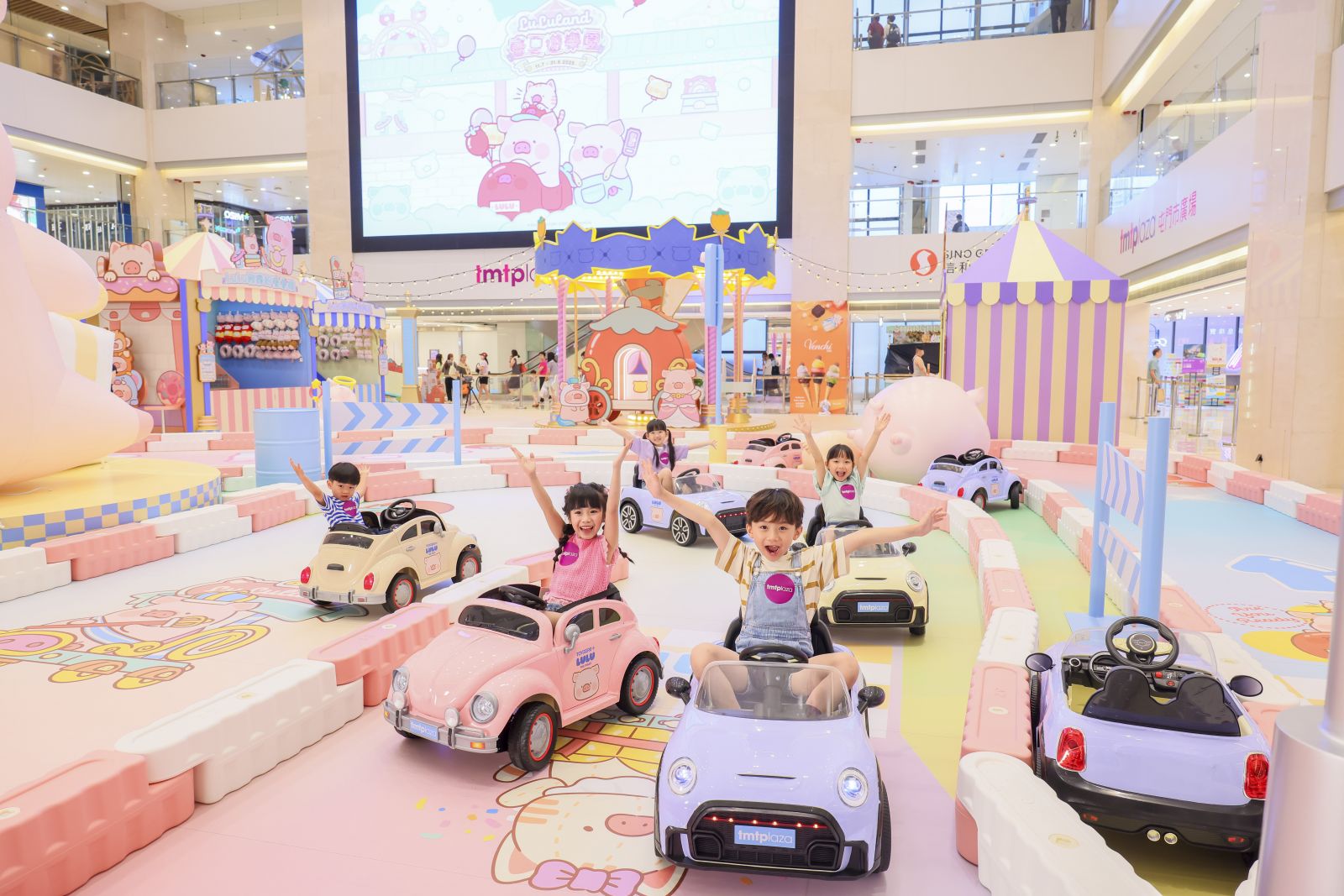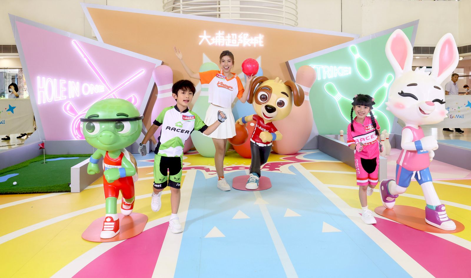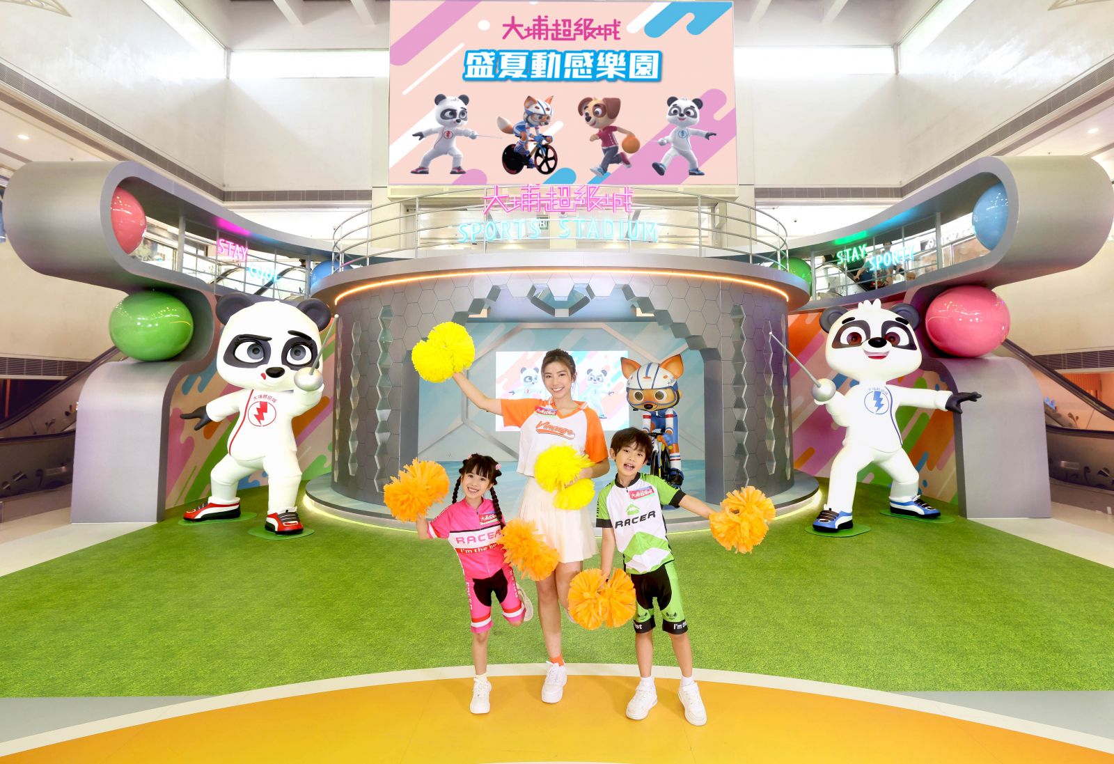 大埔超級城聯乘近期人氣急升的法籍插畫家Nicolas Francescon以香港新地標啟德體育園為場景設計靈感,並以運動和可愛動物元素創作了一系列角色,角色們以不同運動裝扮,穿梭於這個超過1,500平方呎《盛夏動感樂園》中,必玩互動遊戲電子單車挑戰賽,還有8月2及3日清涼趣玩日,包括色彩對對碰、百發百中及泡泡體驗區。每個遊戲都適合大小朋友參與,讓大家在炎炎夏日中玩出滿滿清涼感。