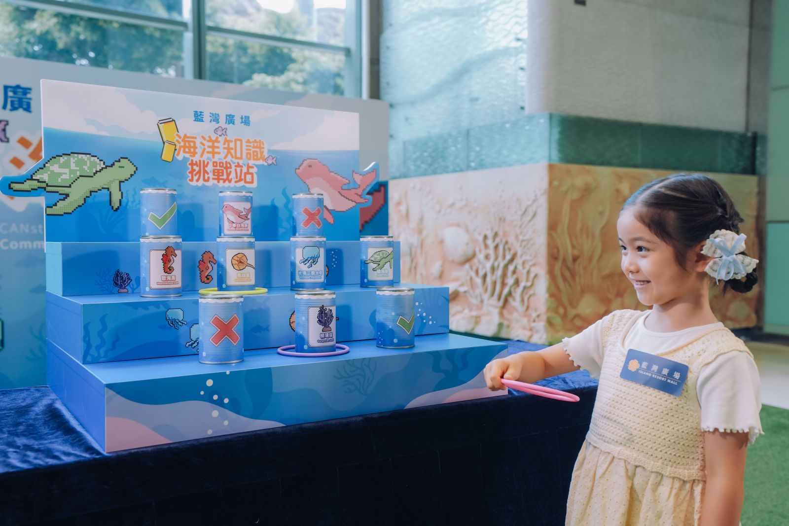 藍灣廣場今個夏日與國際得獎香港設計團隊Alchemist Creations聯手呈獻「罐築海洋」社區藝術展覽,以團隊最具代表性的系列作品《CAN GEM》為基礎,以回收鋁罐製作升級再造的馬賽克寶石方塊CAN GEM,邀請大眾一同拼湊出香港水域珍貴的海洋生物,組成長達5米的巨型「罐築海洋」主題壁畫作品,將環保、保育、藝術融為一體。