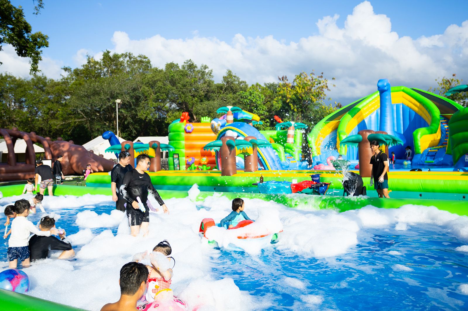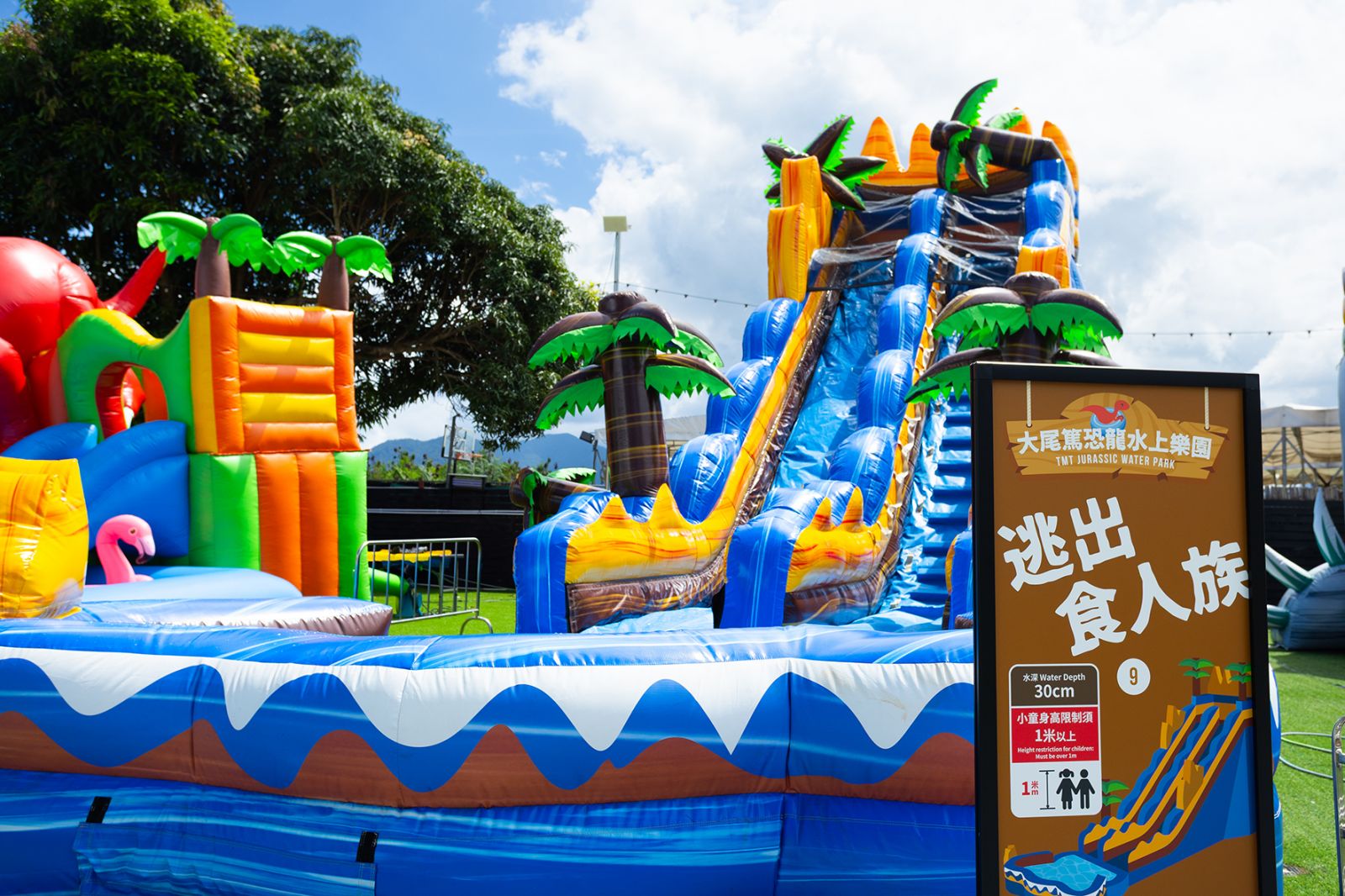 超過48,000平方呎的愉景灣大白灣沙灘將於2025年7月17日至8月31日變身成全港最大沙灘水上樂園,誠邀電力十足的大小朋友齊來參與,在這個熱力四射的盛夏盡情暢玩、彈跳放電,場內設有九大主題充氣彈床遊樂區,小朋友在高達 10 米的「Bell Dual Track Speed Racer 雙道極速飛躍」超巨型充氣滑梯上滑行,感受驚險刺激的沖擊,激起大量水花,還有必備的波波池「Tiger's Slope Ball Pit斜坡波波池」,當小朋友爬上光滑的斜坡,順利觸及Tiger 後再順勢一瀡而下直入水中波波池,盡情激起浪花。