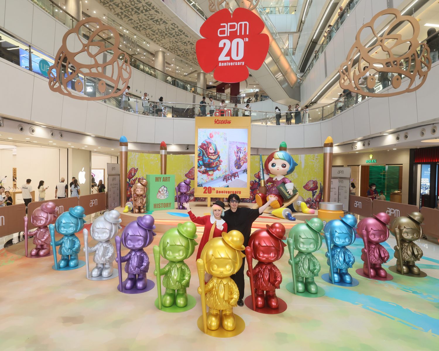 apm與當代藝術代表人物上野陽介(Yosuke Ueno) 攜手合作,舉辦首個香港商場大型展覽,以其筆下象徵「生命光輝」的經典小女孩角色HAPICO為主題,在商場3,000平方呎中庭打造「幻想工作室」,回顧藝術家多年來創作歷程、重溫其標誌性作品,亦以不同景點標示 apm開業以來堅持潮玩創新的DNA,包括3米高的畫家HAPICO、 13個以各種原色(Monocolor)塑造的HAPICO、以及雕塑、吊飾演繹其經典頭像等,合共20組大型展品。