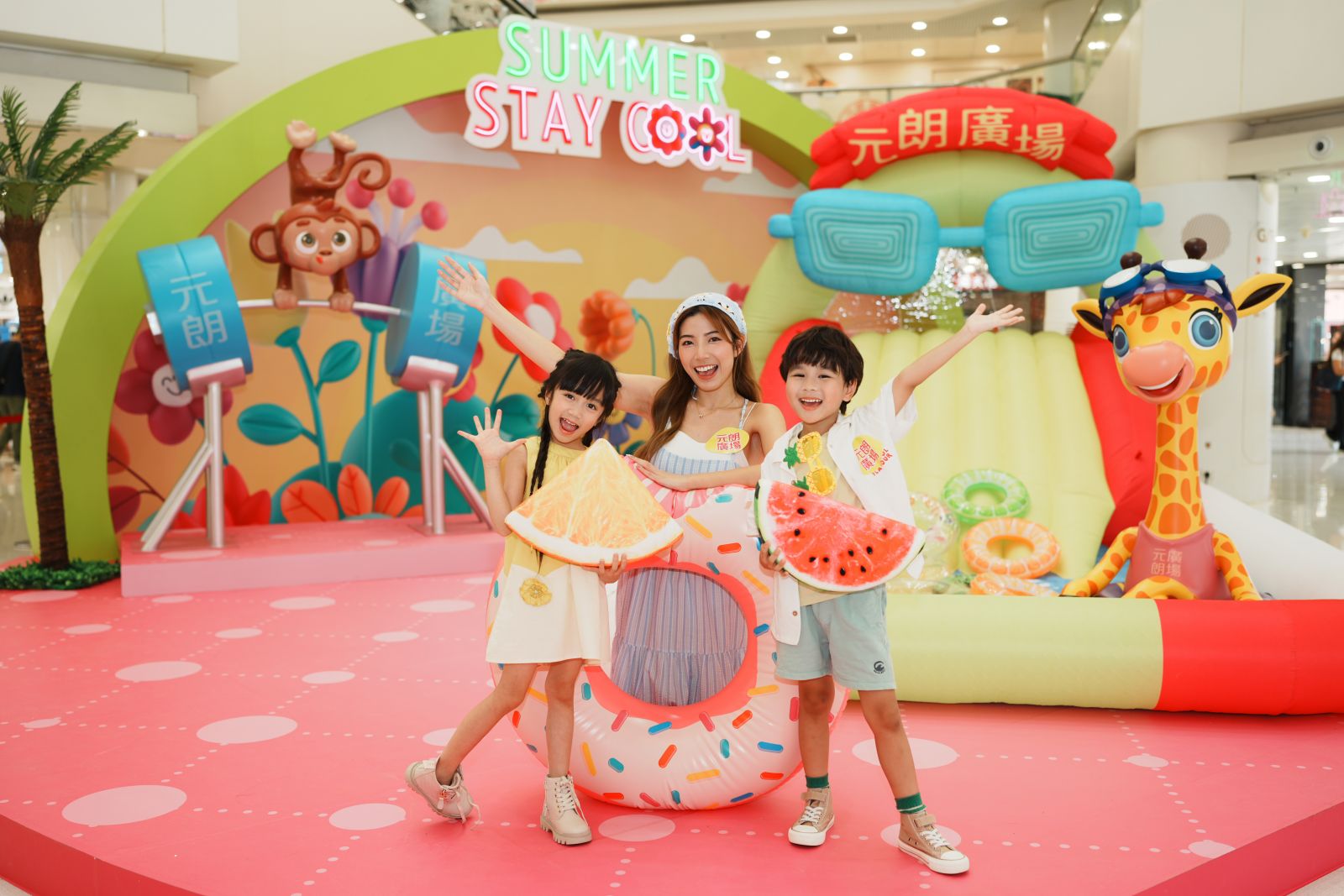 元朗廣場特邀法籍插畫家Nicolas Francescon,以池畔派對為創作靈感,以其別樹一幟的畫風創作趣緻可愛的動物角色,於熱鬧好玩的派對中享受陽光,還有玩轉夏日派對於8月2及3日登場,三款適合大小朋友參與的夏日遊戲項目,包括:「彩虹層層疊」、「眼明手快」及「夏日跳飛機」,讓大家享受遊戲的樂趣。