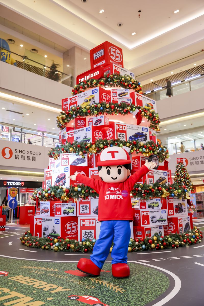 全港首棵以TOMICA經典紅色包裝盒巧妙堆疊而成的聖誕樹,化身成一座巨型節日禮物塔,每個禮盒都標示著不同型號的TOMICA玩具車