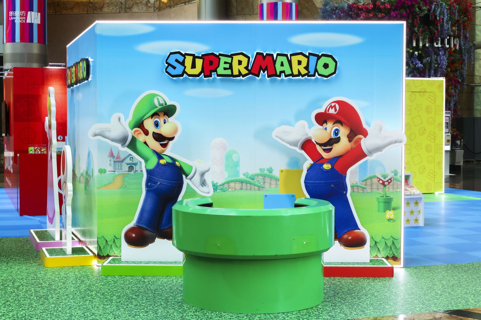 現場特設以「超級瑪利歐」為題的打卡區,當中包括經常登場於瑪利歐系列蘑菇王國的「水管」場景,場外打卡區更設有瑪利歐、路易吉、碧姬和奇諾比奧角色立牌,歡迎大家一次過「集郵」喜愛角色。