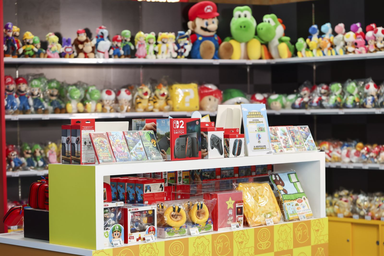 會場特設販賣區,販售多款「超級瑪利歐」系列精品,除了 Nintendo Switch 2主機、遊戲軟體、週邊商品等,還有毛公仔、鑰匙扣和收納袋等商品發售。兩款為 Nintendo Switch 2而設的控制器和便攜包更將在會場優先發售,還有預定於 3月12日(四)發售的《閒聊花花》由活動即日起可於現場接受預訂,各位機迷不容錯過。