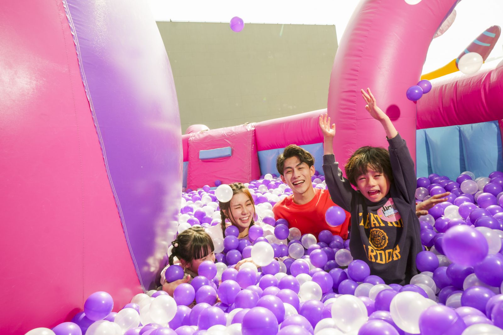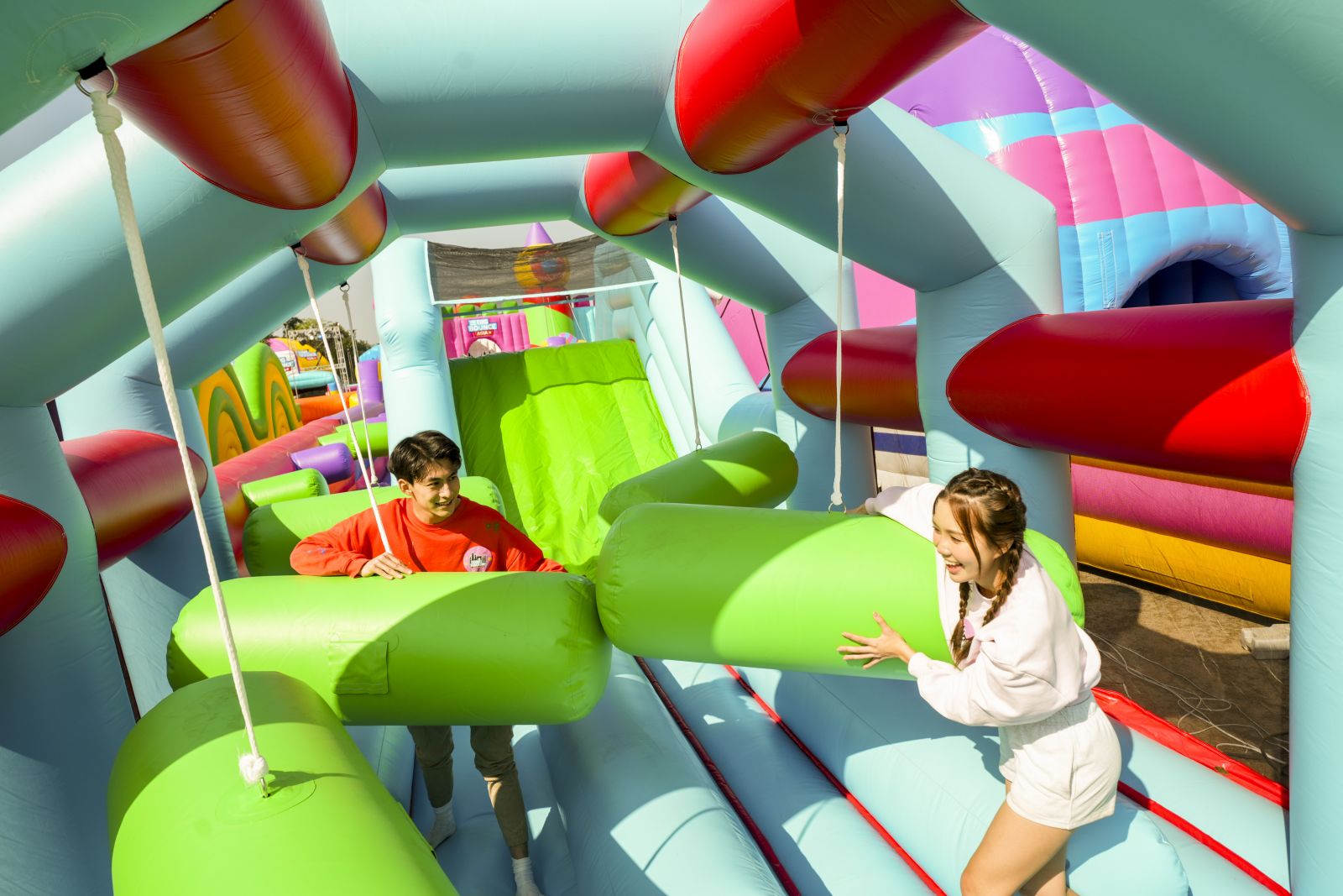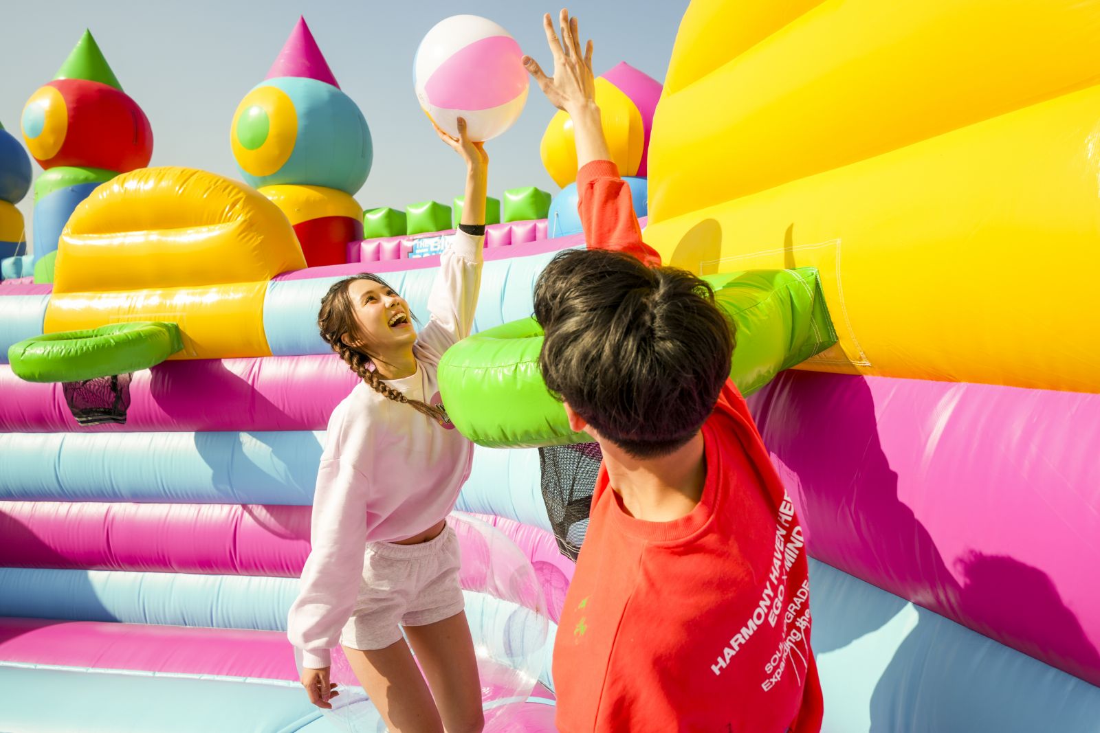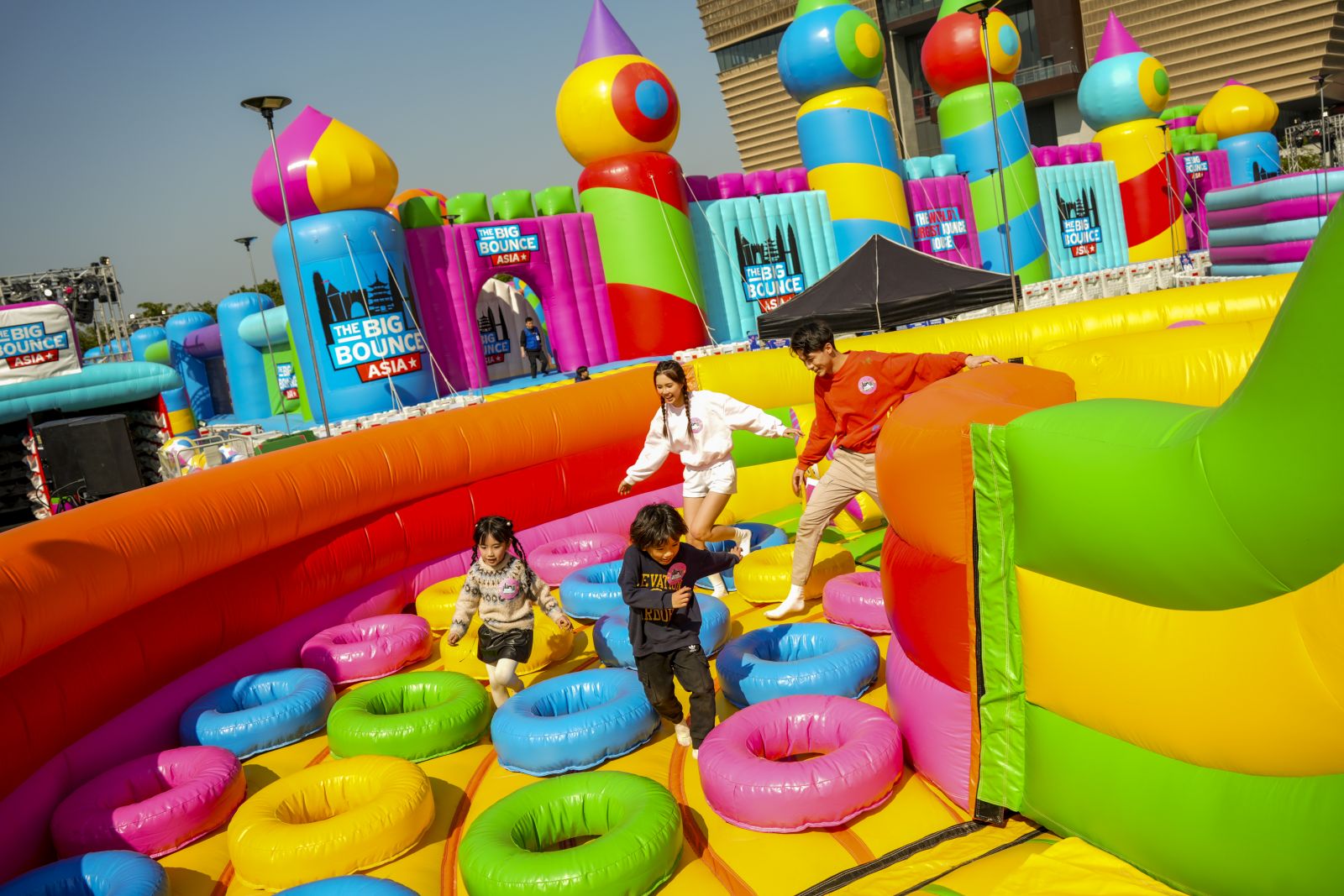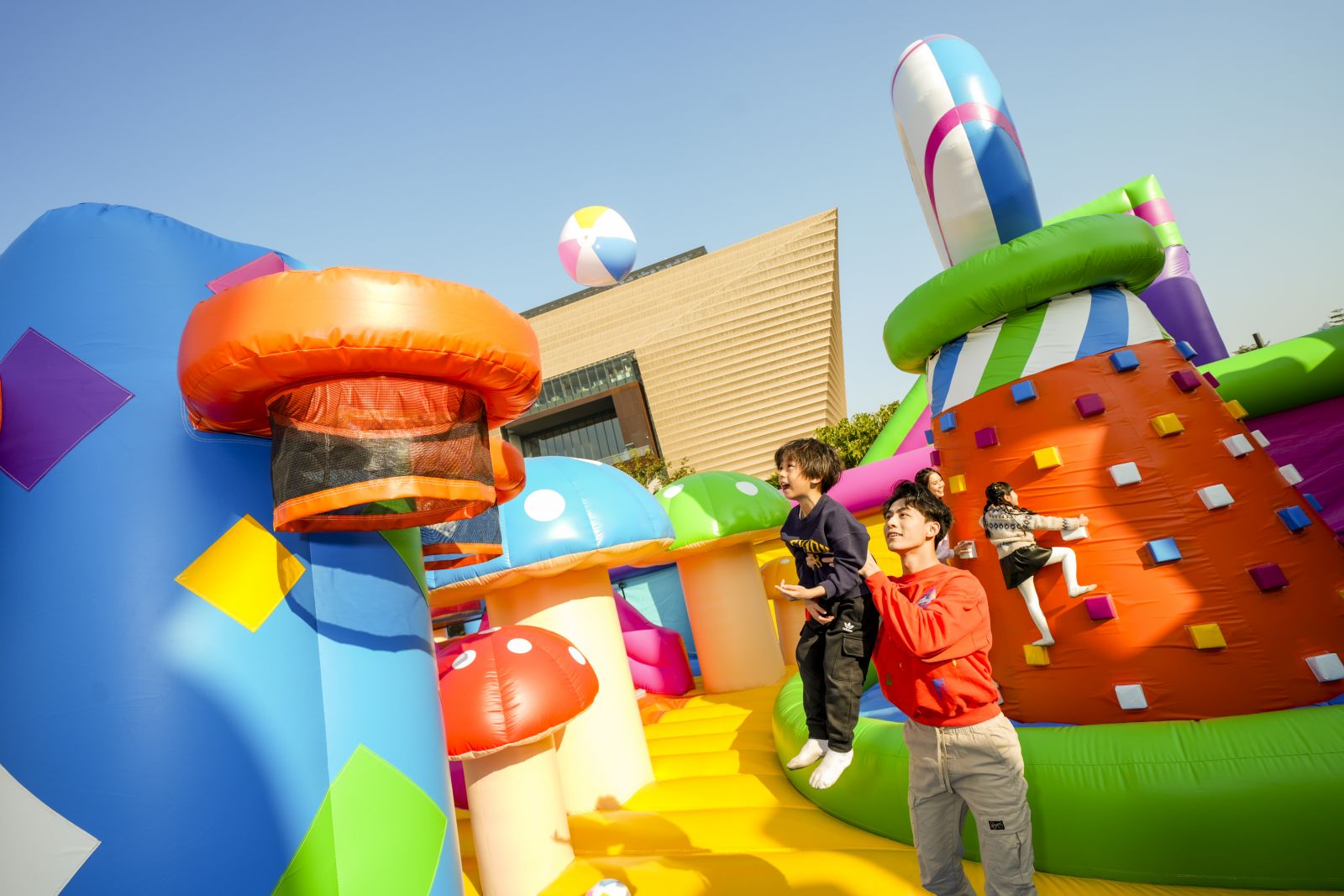 這座超巨型充氣堡壘佔地超過16,000平方呎,頂峰達12米高,是獲健力士世界紀錄官方認證的全球最大充氣城堡。城堡裡有色彩繽紛的巨型滑梯、攀爬塔和籃球架,形狀大小各異,必然成為最熱打卡點,在中央的活動舞台上,駐場DJ會根據觀眾的年齡層調整音樂,並主持小遊戲和比賽,將現場氣氛推至高峰。