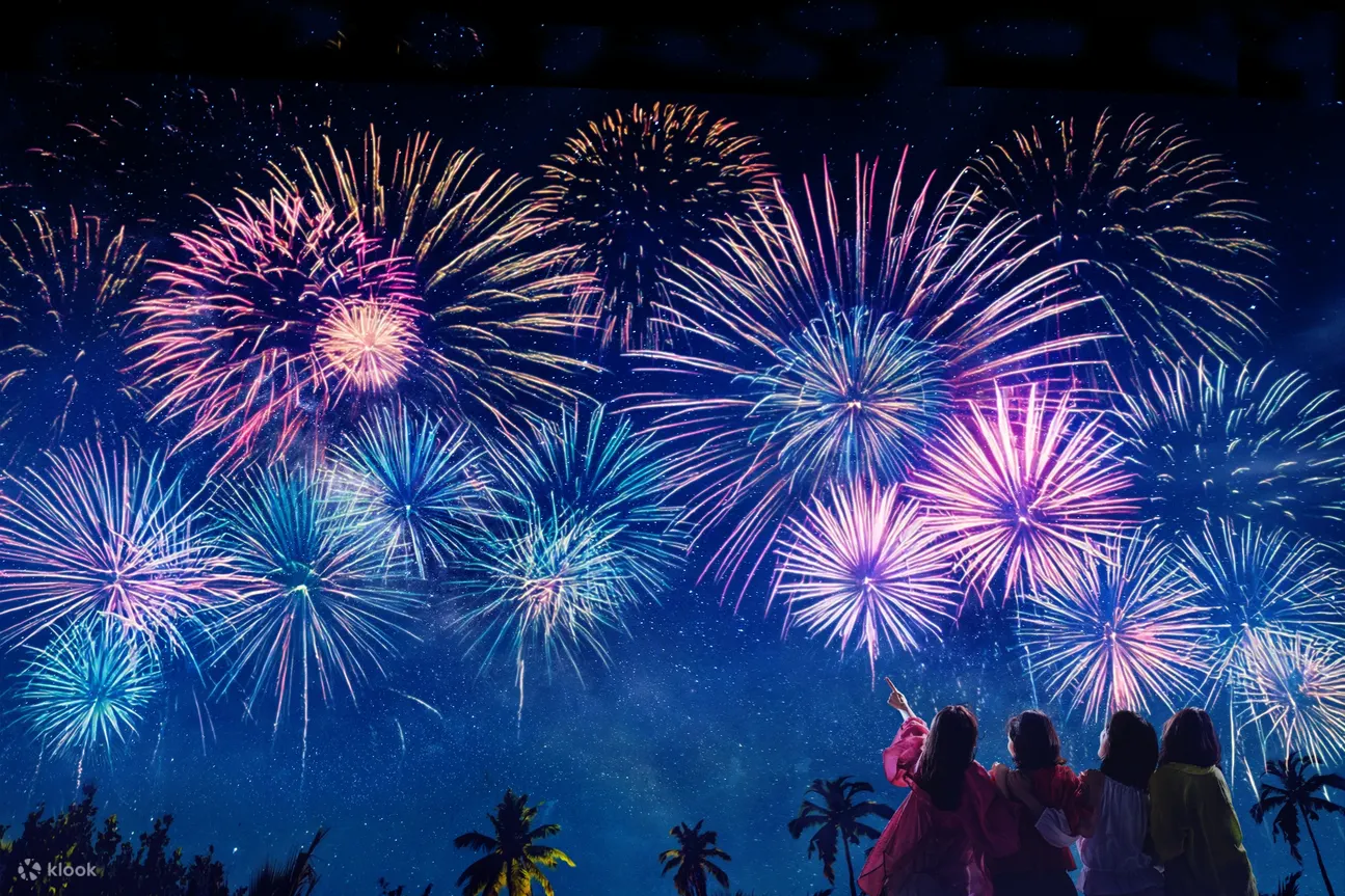 無數色彩極端的花朵在熱帶夜空中綻放 燦放於夜空中的煙火,艷壓滿天星斗。夜幕染上紅、黃、藍、綠與純白的光彩。數不清的煙火,完美地隨著園區的音樂節奏綻放在眼前。一邊感受熱帶晚風一邊抬頭享受此種美景,讓您擁有從未經歷過的奢華時間。
