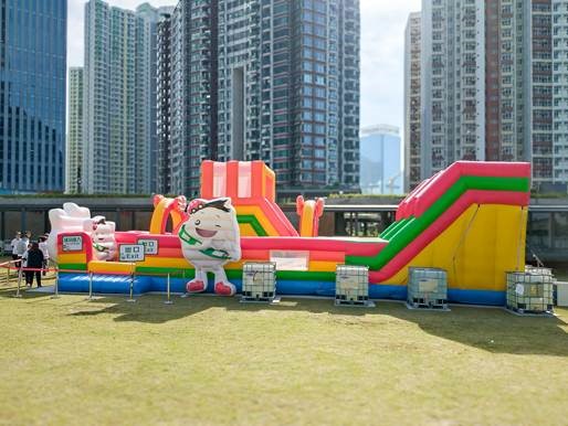 近 18 米長的大型彈床設置多個交通標誌 讓小朋友盡情放電的同時亦能學習到遵守交通規則和道路安全知識。
