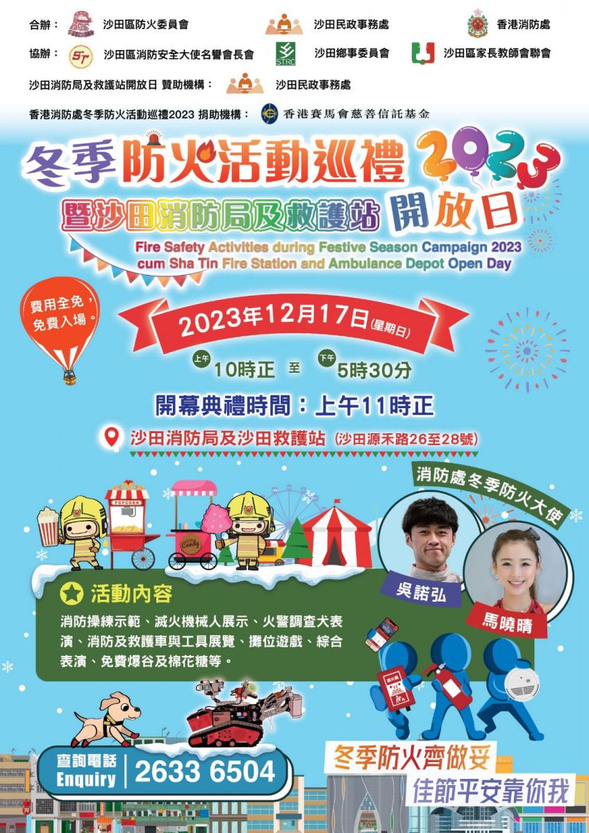 活動:綜合表演、攤位遊戲、消防操練示範、消防車及設備展覽