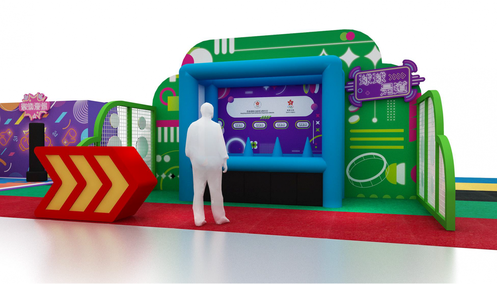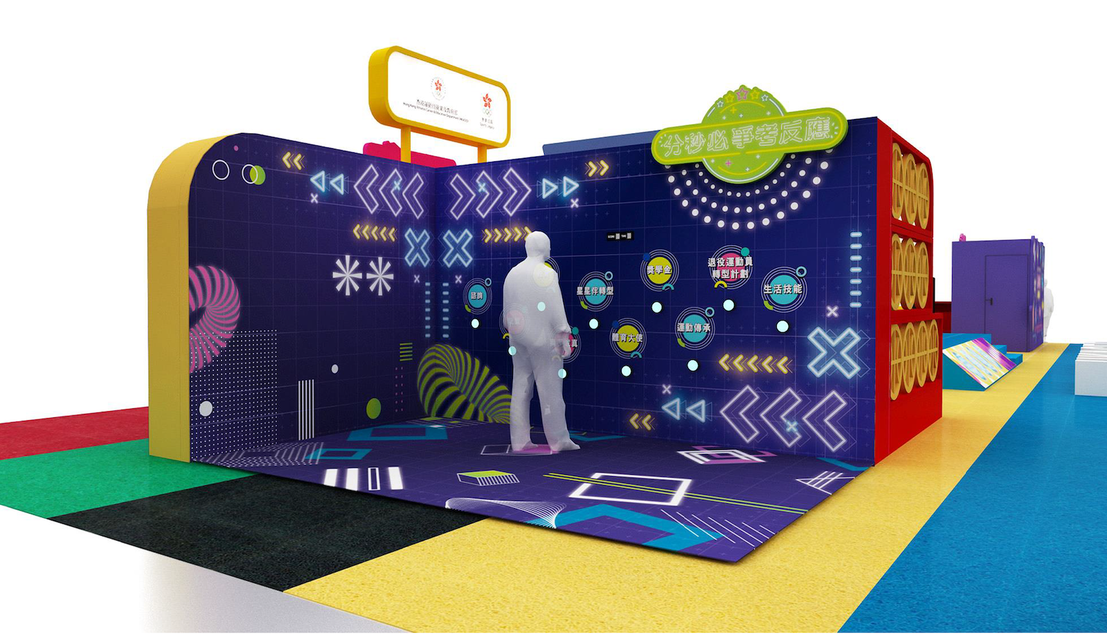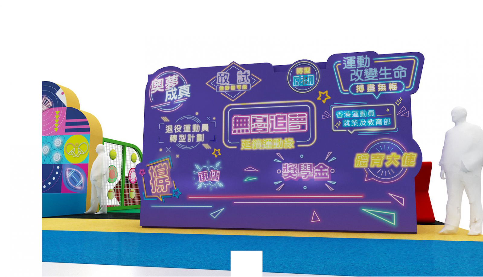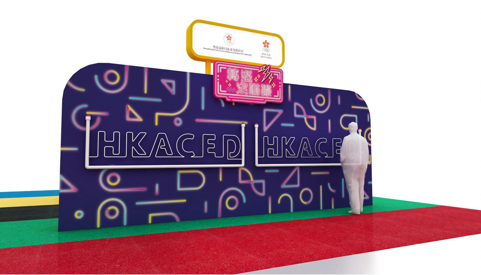 一家大小可在附有各種HKACED 運動員服務字樣的特色霓虹燈佈景前盡情打卡,留下美好的體育時刻。