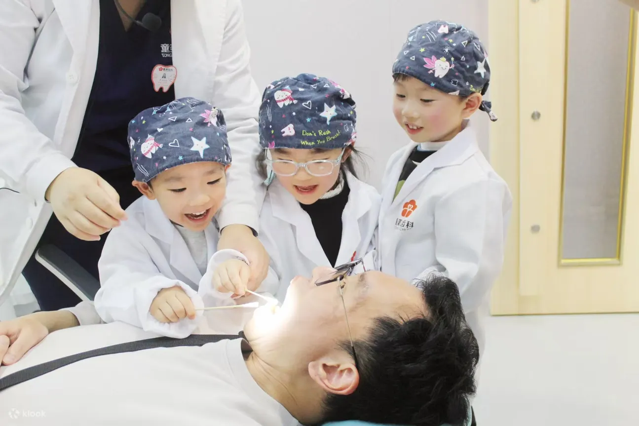 小朋友可在真實診療室中體驗「做牙醫」的感覺。孩子將穿上牙醫白袍,親自為爸爸媽媽檢查牙齒,學習溝通與基本口腔觀察技巧,從牙齒結構、刷牙方法,到自我觀察牙齒,寓教於樂,幫助孩子建立正確口腔護理觀念。活動結束後將頒發「小小牙醫證書」,設有牙醫主題背景牆拍照留念,留下成長足跡。