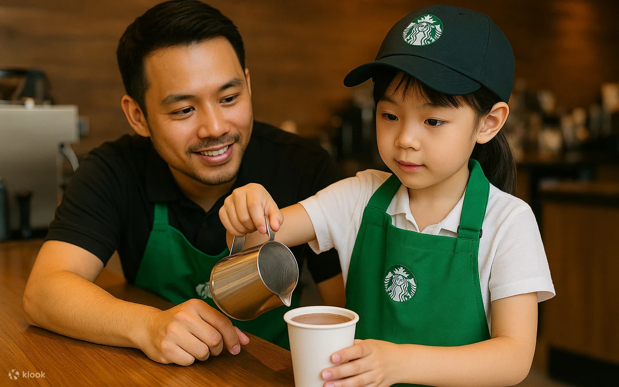 由穿上專屬圍裙,化身星巴克小小職人,體驗咖啡師、清潔員同收銀員的日常工作。小朋友可以認識不同產地的咖啡豆香氣,並親手製作手工朱古力帶回家,還可以學習將用過的咖啡渣變成實用環保小物。在完成任務後,每位小朋友會得到「小小職人」證書和象徵性薪水,成就感滿滿。
