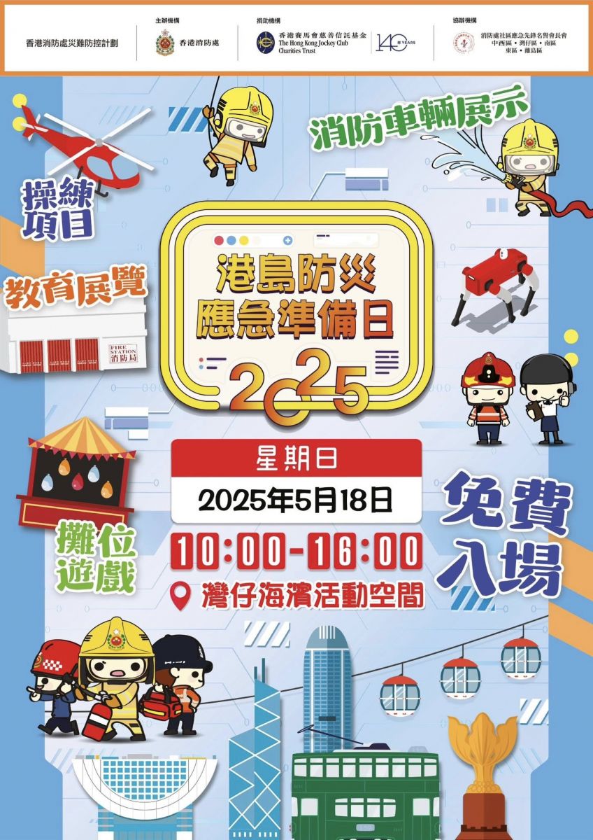 消防處不時都為公眾舉辦不同類型的活動,向大家宣導防災應急知識,5月消防處亦將會於5月18日分別在尖沙咀和灣仔,舉行消防局開放日和防災應急準備日,大家必不能錯過消防工作體驗和消防車輛及工作展示等精彩活動。