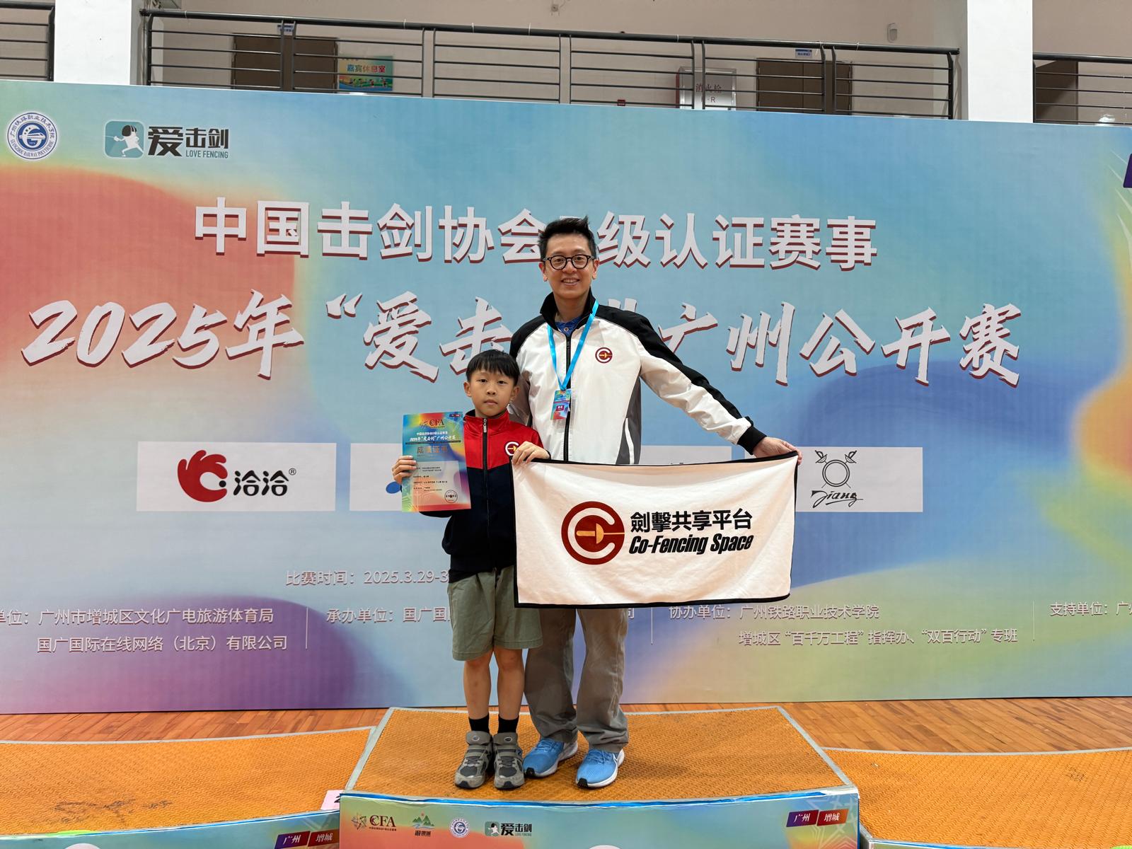 眾多在「劍擊共享平台」上堂的小朋友裏面,士睿一向是對劍擊最有熱誠的其中一個小朋友。2024年深圳粵港澳小學生賽,早上他發燒到嘔吐,父母勸他退賽,他都不肯。場上的他休息時蜷著,裁判叫名就撐起來上場,比賽一開打就忘記了病痛,劍劍精準有力,最後更拿到季軍,全場對手家長都非常佩服這個小劍手的堅持和毅力。
