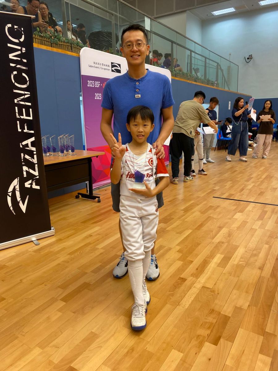 2015年出生的士睿,四歲第一次「試」劍,在啟蒙班從輕鬆的練習遊戲開始,天賦很好的他很快就愛上劍擊。在班上,教練會用有趣的方法教步法,讓小朋友們可以邊笑邊學好基礎。一年間,士睿便從連劍都拿不穩,到竟然在第一次小比賽中拿到冠軍,初嘗嬴的滋味。在父母支持和教練指導、栽培下,以及幾年間堅持訓練,士睿不僅提升了劍術,亦學會了努力的重要性。