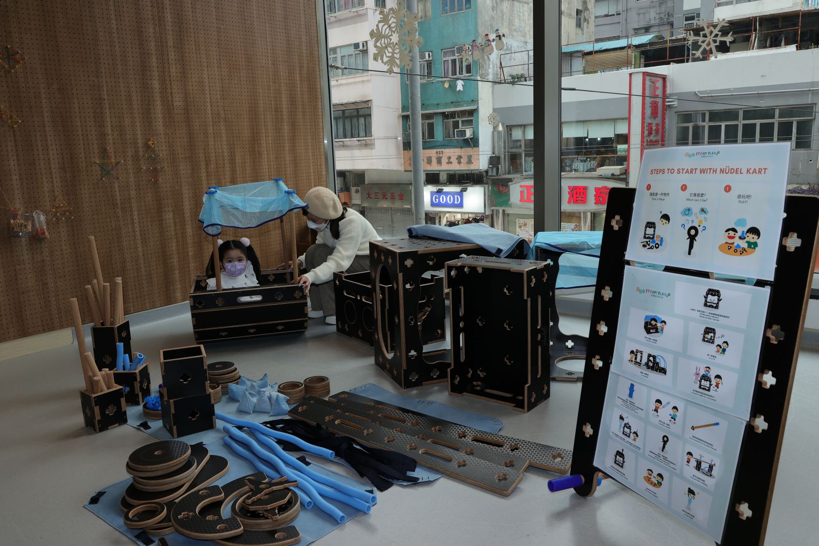 場內擺放鮮彩繽紛的亞加力膠棒,小朋友可以自由創作出不同的組合。