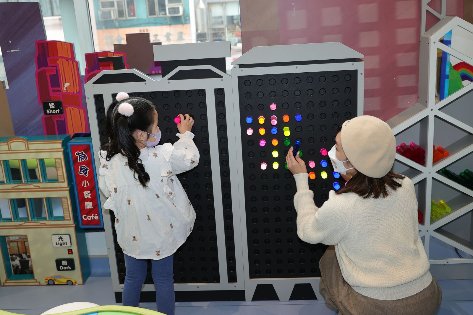 五光十色的高樓大廈,是香港特色地標之一。在「建築物」內放入不同顏色的亞加力膠棒,可打造出美麗兼發光的圖案。各個「建築物」內還暗藏玄機,鼓勵小朋友運用不同感官,於香港特色地標中自由探索。