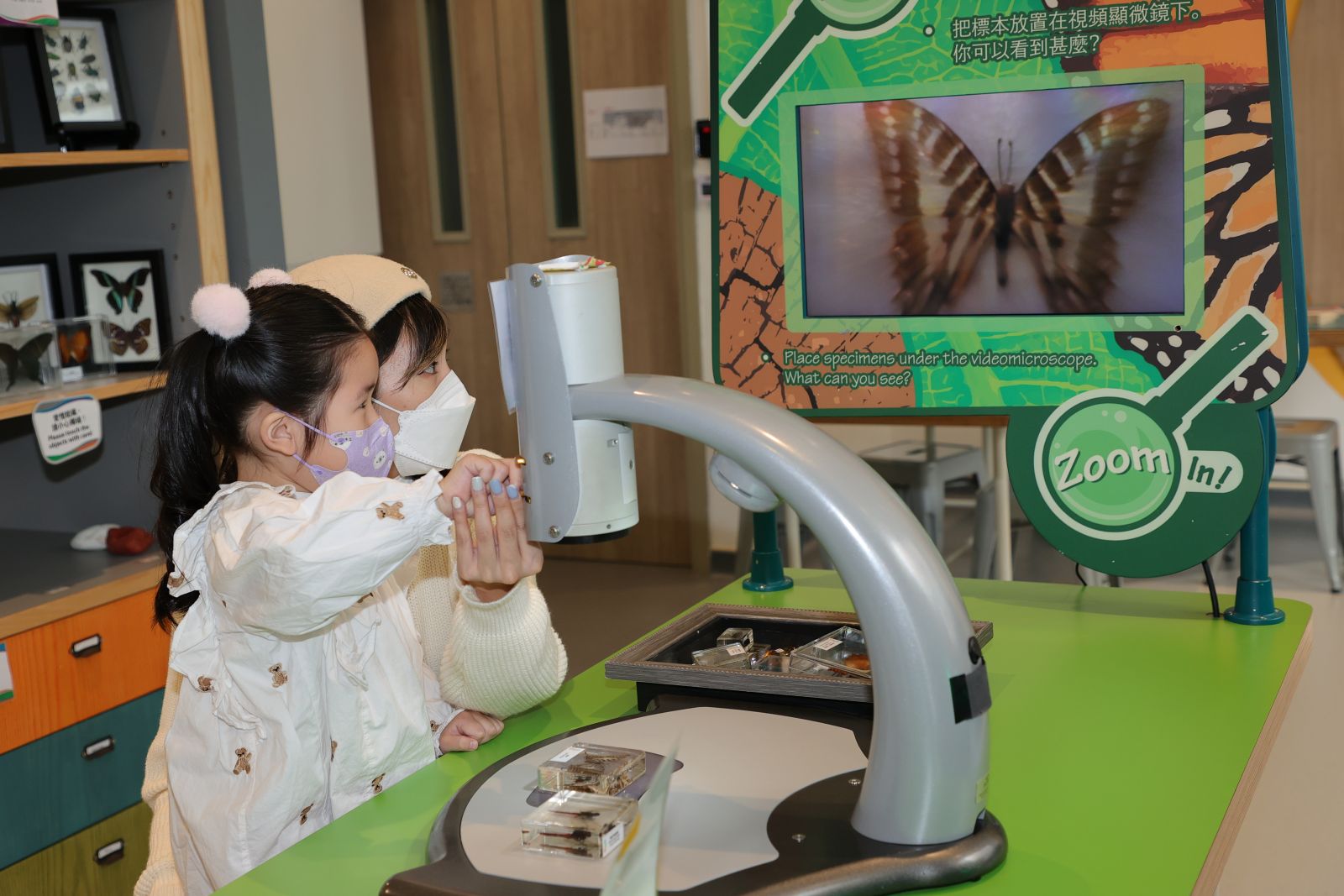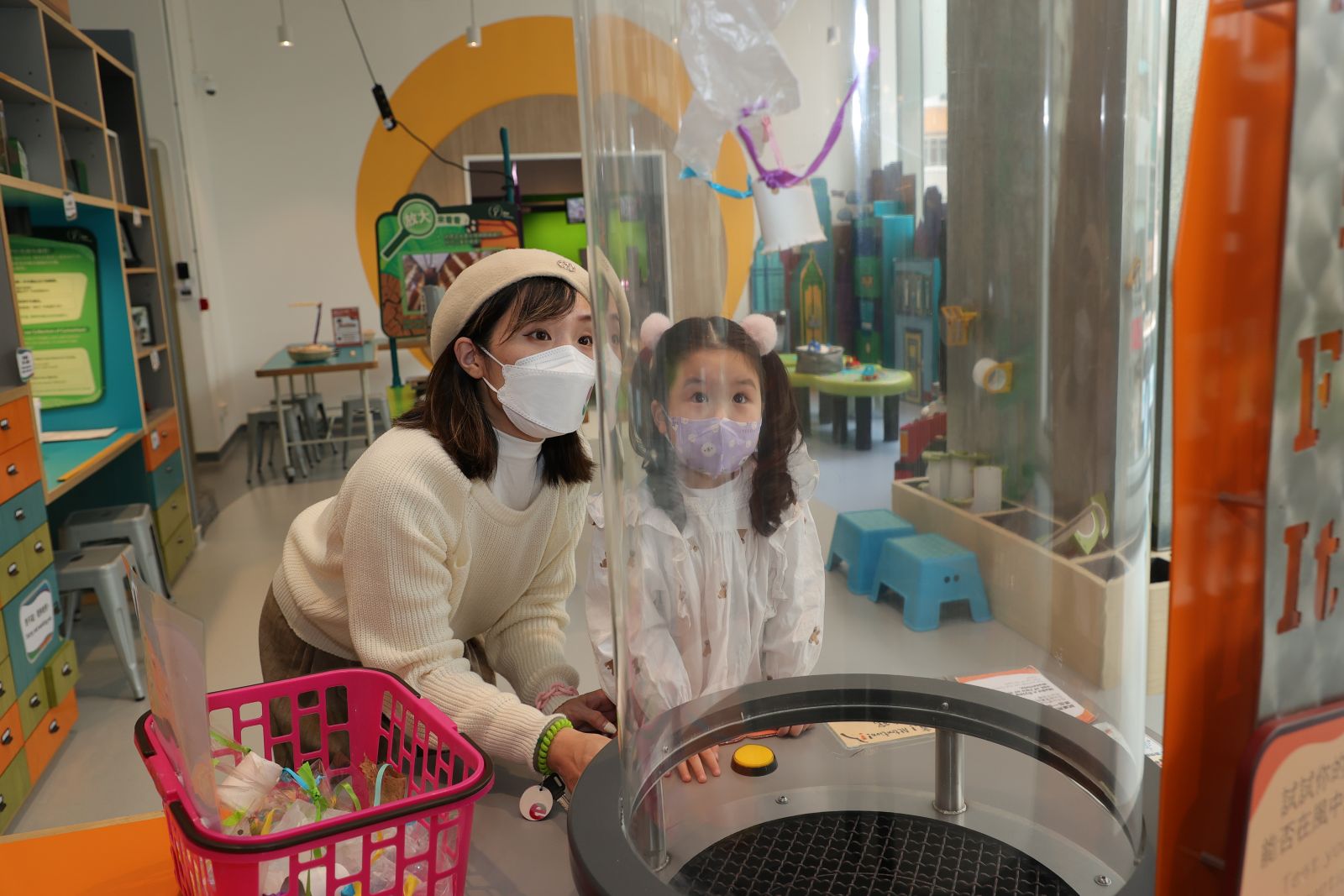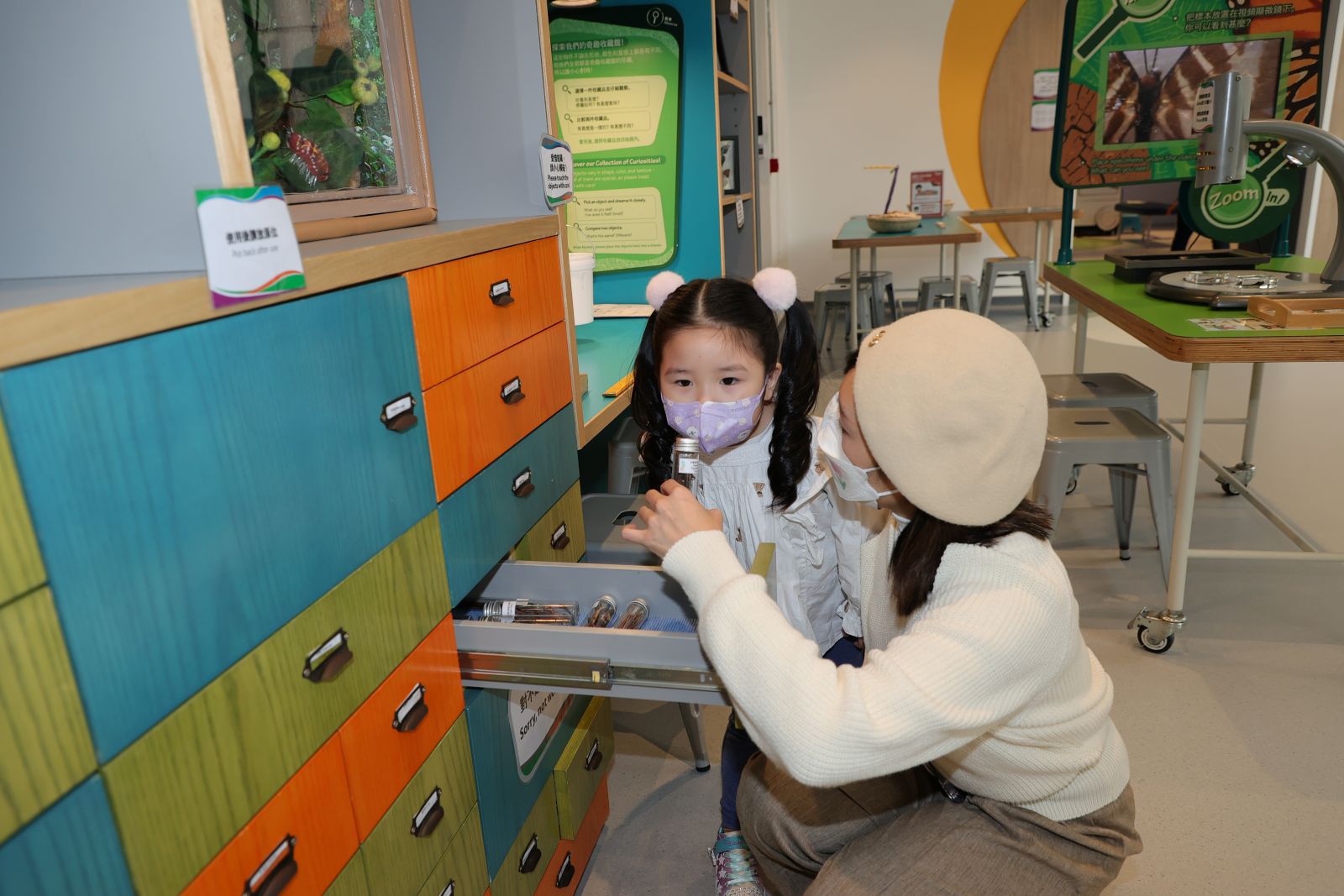 在互動探索區內,小朋友可以觀察各式各樣的標本,認識大自然的奧妙。區內同時亦展出環保資訊,好讓孩子學習尊重與愛護環境。另有「百變磁力牆」與「風之管」,鼓勵孩子動動腦筋,創作出獨有的玩法。