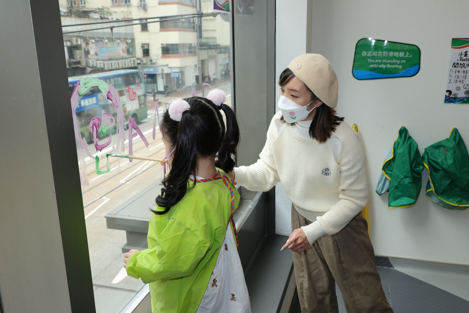 落地大玻璃化作孩子的大畫板,遙望着窗外的百年電車路,同時體驗新奇的繪畫樂趣,兼且展現出小朋友的藝術細胞。