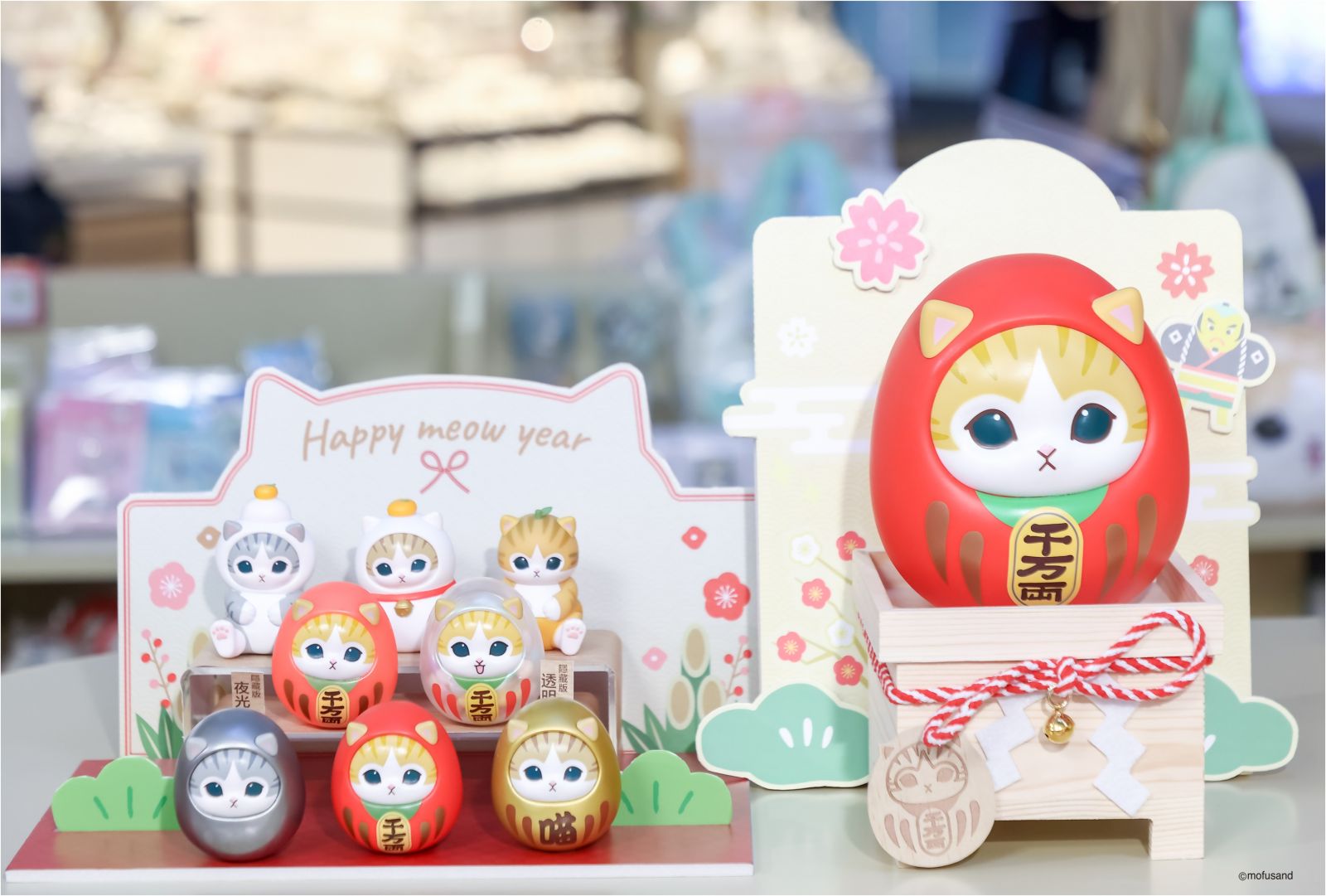 在皇室堡「幸福喵萌商店街」則有會場首發的賀年造型盲盒,當中包招財達摩mofusand、鏡餅mofusand、柑橘moufusand等。若大家想為家中添新裝,更可入手會場限定的mofusand插畫,以藝術療癒心靈。大家亦可憑消費換領「迎貓接『腹』利是封」或「幸福滿載和風手挽袋」,而且換領「貓迷愛『扮』工揮春」。