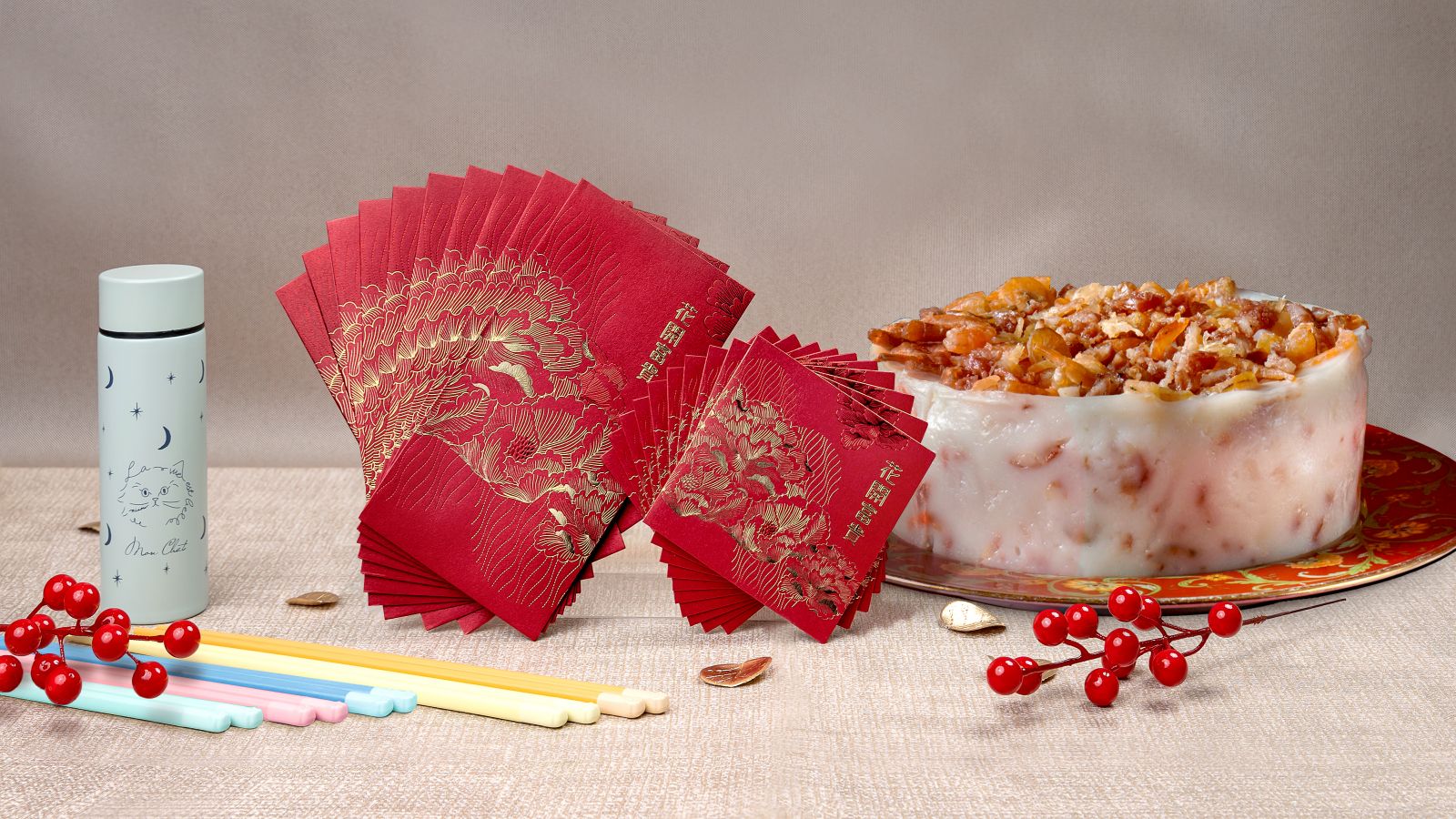 8隻小可愛達摩貓為大家送上8大新春祝福,包括健康、吉祥、幸福、發財、勝利、開運、福氣及戀愛。大家可沉浸在清新日系新春風格,許下各種不同的新年願望。