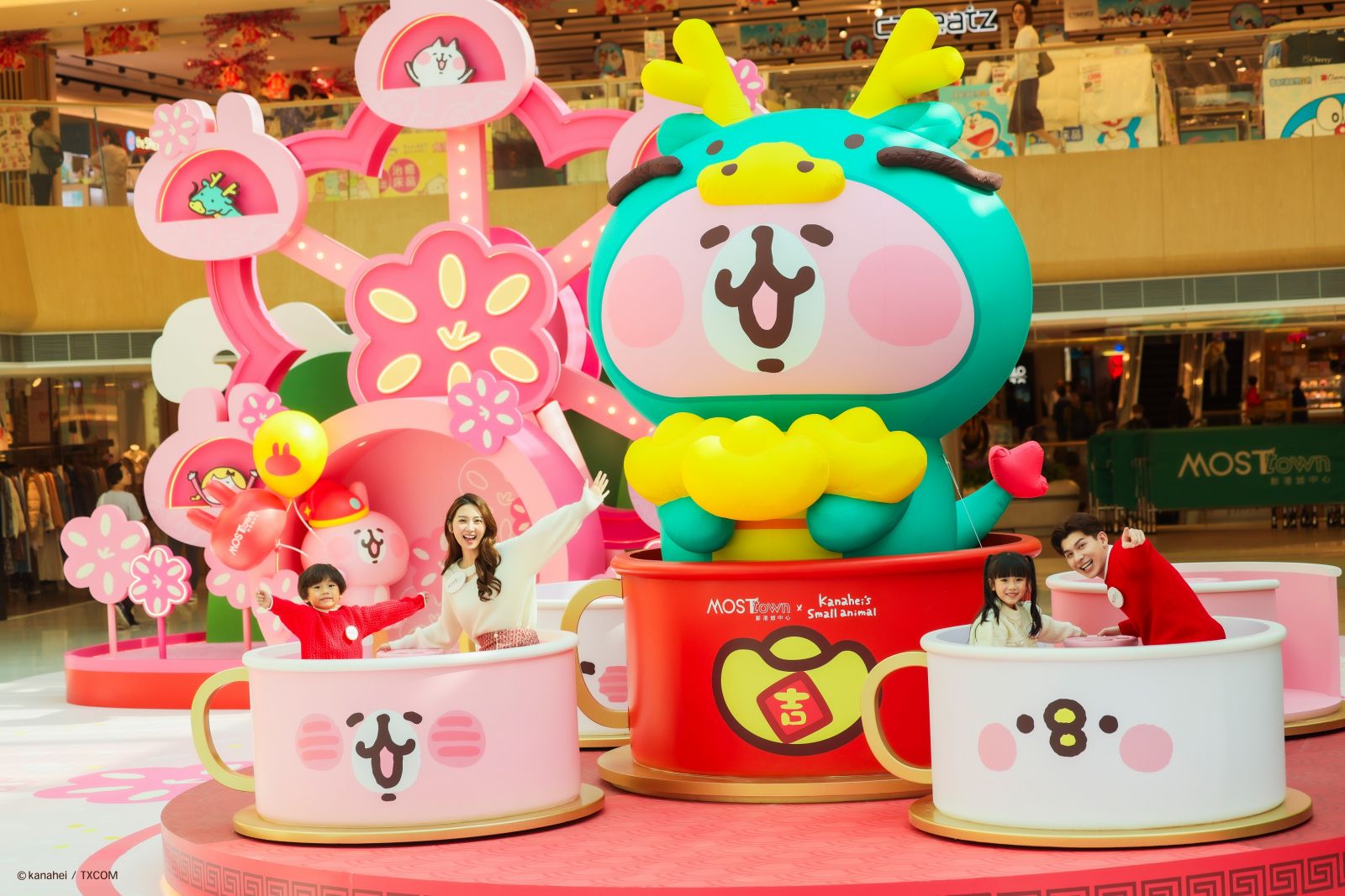 為迎接龍年,MOSTown新港城中心首度聯乘日本高人氣角色Kanahei’s Small animals打造龍年限定「MOSTown新港城中心x Kanahei’s Small animals 福氣最『龍』遊樂園」。由即日起至2月25日期間, P助、粉紅兔兔及一眾朋友以全新龍年造型亮相,變身最萌賀歲吉祥物與大家暢遊主題樂園,包括5米高的打卡桃花摩天輪、釣金菠蘿及限定禮物等精彩新年活動,大家必定樂而忘返。