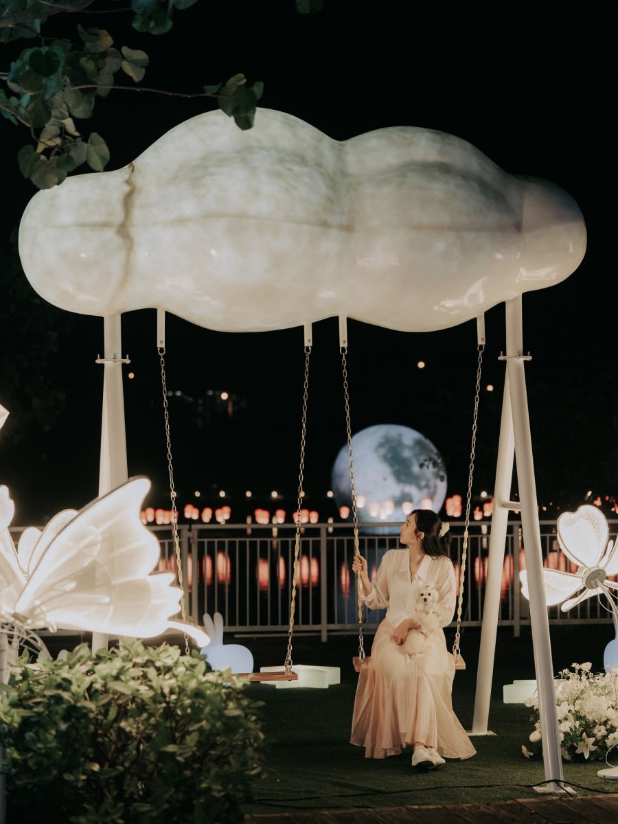 Lake House一年一度的中秋盛會即將化身為一個夢幻的粉霞大型派對,白鷺湖10米大型月亮、草地上5米高的粉霞月亮,閃爍星空森林裝飾、玉兔及全新打卡位,仿佛置身於童話世界。