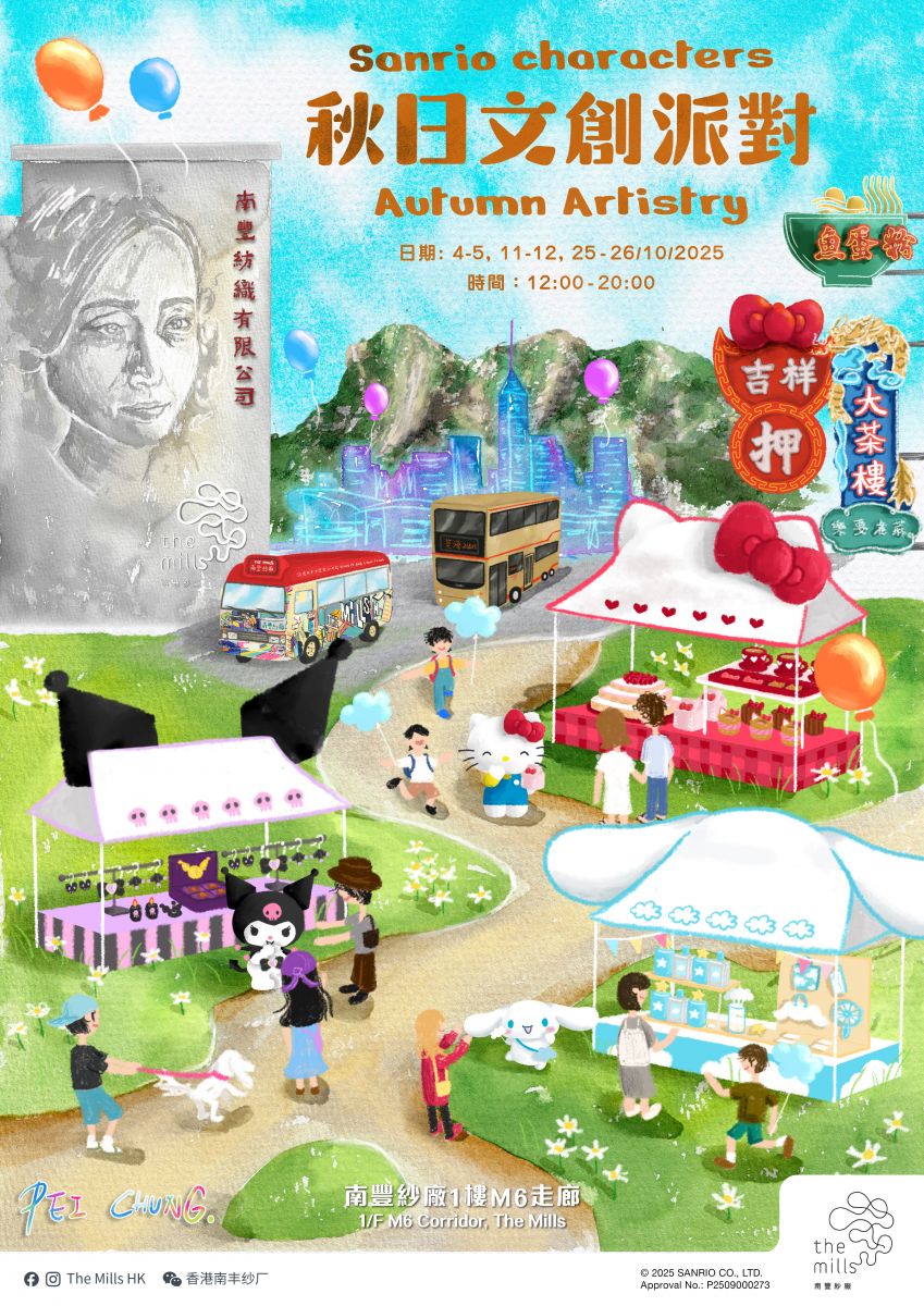 南豐紗廠將於10月4至5日、11至12日、25至26日呈獻「Sanrio characters 秋日文創派對」,聯同多個本地創作單位,以Sanrio角色香港區三甲得主 Cinnamoroll、Kuromi 和 Hello Kitty 為靈感,帶來逾百款全新文創產品,為全球大熱的角色注入本土文化元素,為粉絲們帶來驚喜。