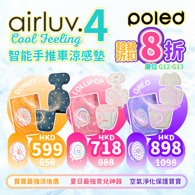 Poled AIRLUV4 Oreo 智能手推車涼感墊是日韓熱銷的Premium高階款,提供全方位防水和矽膠塗層冷卻織物,能有效增強冷卻效果。它支持遠端控制風扇的風量,並採用HEPA13濾網,過濾效能達到空氣清新機標準。配備USB充電接口,使用5V/3A行動電源可持續約11小時,符合航空登機規定。