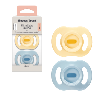 Tommee Tippee Ultra light超輕矽膠安撫奶嘴採用創新設計,重量比原Ultralight款輕20%,比市面同類產品輕50%,獨特重心設計讓奶嘴更易穩固於寶寶口中。對稱奶嘴與護罩貼合臉型,雙面皆可向上使用,搭配啞光柔膚觸感,減少皮膚接觸並促進透氣。通風結構能溫和保護牙齦發育,另可搭配安撫奶嘴扣防遺失。隨附微波消毒盒,方便攜帶清潔。