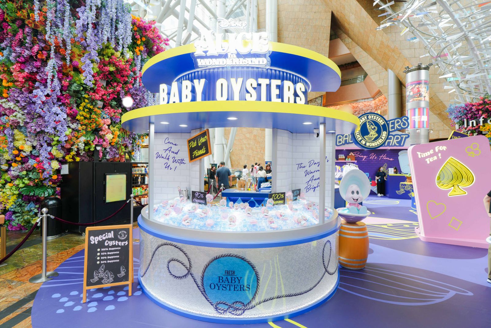 旅程尾聲將走進「Baby Oysters Mart購物區」,探索一系列精選角色精品,從生蠔寶寶造型手機配件、實用生活小物,到收藏級盲盒) 都一應俱全,每件商品都承載著《愛麗絲夢遊仙境》的基因。每個展示櫃都化身寶藏櫥窗,讓選購過程成為收藏儀式的最後篇章。