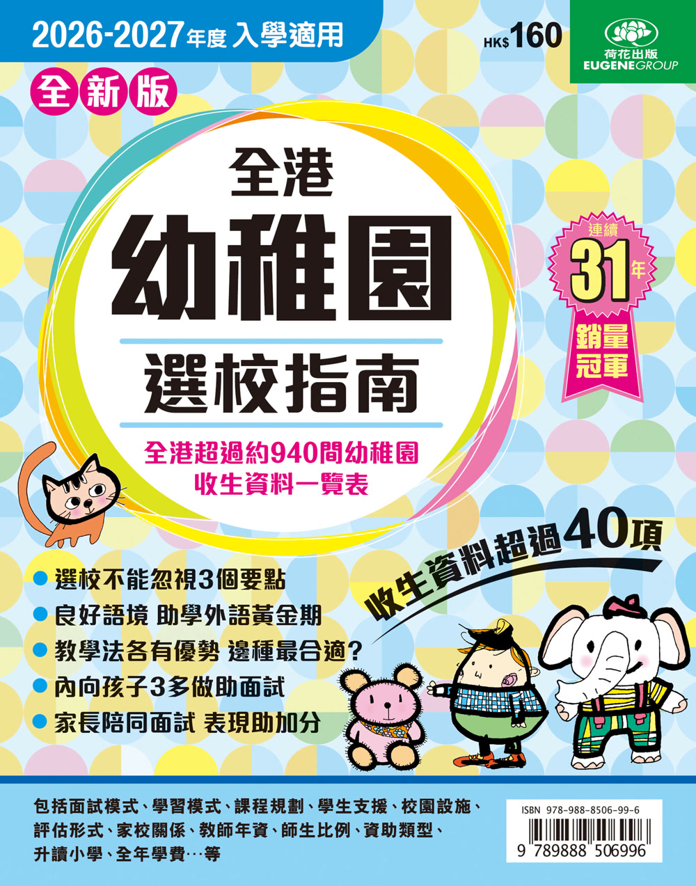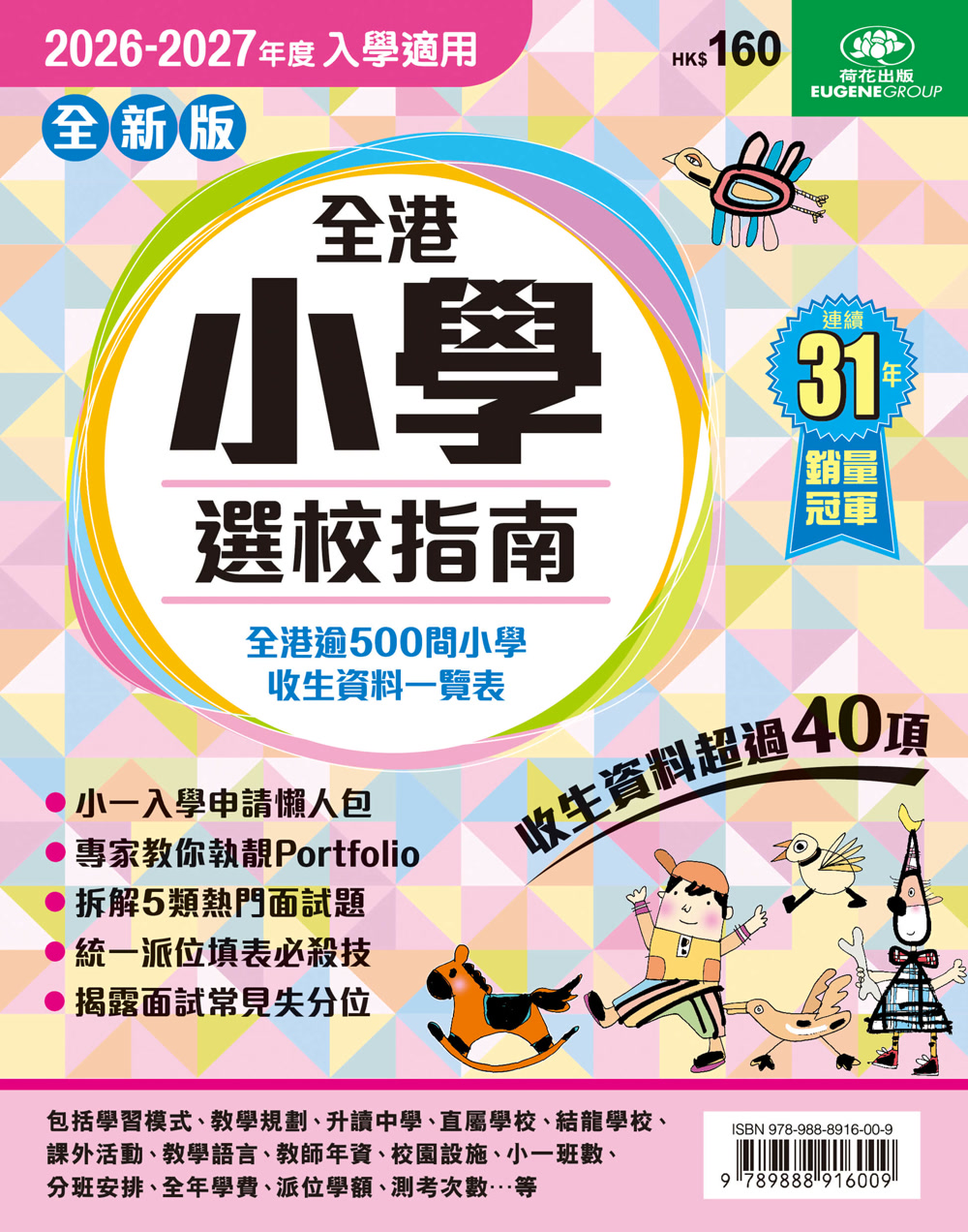 升學天書系列緊貼每年最新學校收生資料,深受一眾家長信賴。內容全方位網羅:預備班、幼稚園 及小學的面試攻略、選校指南和學校精選,讓家長掌握全面及準確的升學資訊。