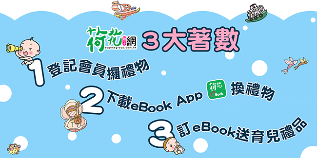於會場即場購買荷花eBook 的訂閱禮券,即送你媽寶至Like禮品,重量級禮品更會於荷花親子Eugenebaby facebook 專頁公布。
