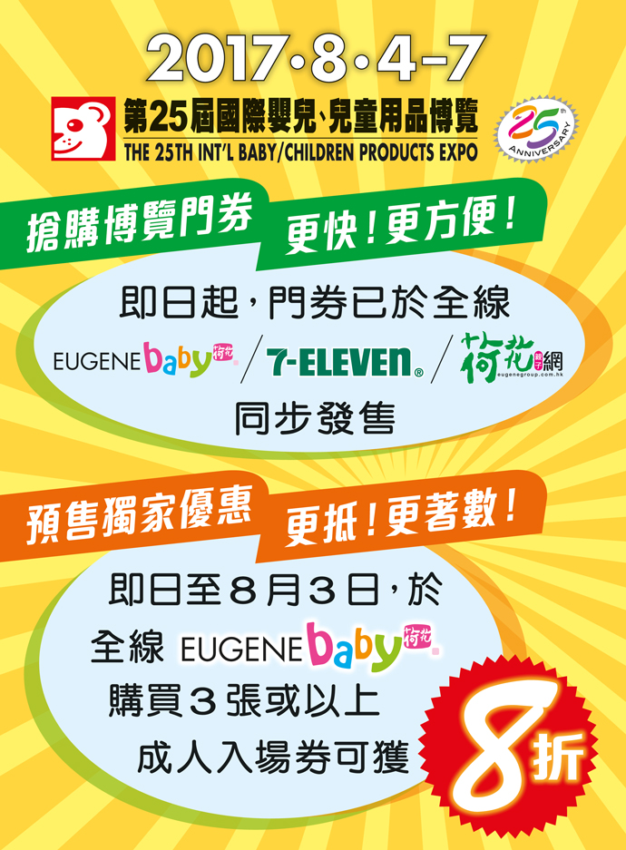 「第25屆國際嬰兒、兒童用品博覽」暨「第29屆全港嬰兒慈善馬拉松爬行大賽」將於8月4至7日假灣仔會展Hall 1舉行。