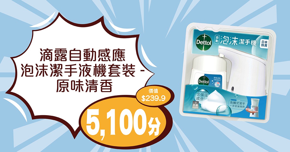 滴露自動感應泡沫潔手液蘊含保濕成分Glycerin和抗菌成分。於潔手時,綿密的泡沫能均勻分佈雙手去除細菌。體驗清香柔滑的泡沫,同時擁有深受信賴的滴露防菌保護,讓您的家人免受細菌侵害。