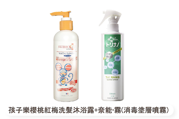 孩子樂櫻桃紅梅洗髮沐浴露+奈能‧霧(消毒塗層噴霧)