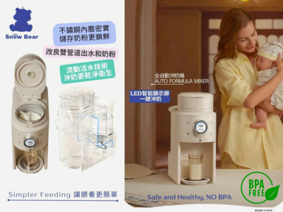 全自動沖奶機26年震撼登場!採用水粉分離雙通道設計,專利較正奶粉和水的份量技術,另創新流動活水技術,加配不鏽鋼內膽密實儲存奶粉更鎖鮮。新手爸媽沖奶一步到位,奶粉和水份量精準呈現LED屏幕,沖奶全程看得清。