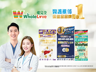 「WholeLove 愛完全」 No.1 醫護推薦保健品品牌 主打醫學級配方,產品榮獲註冊及專科醫生推薦,並得到香港醫護學會認可,深受專業醫護人員信賴。當中的「全逆齡 NMN」系列更深受視后李施嬅、港姐陳曉華等星級用家推介。