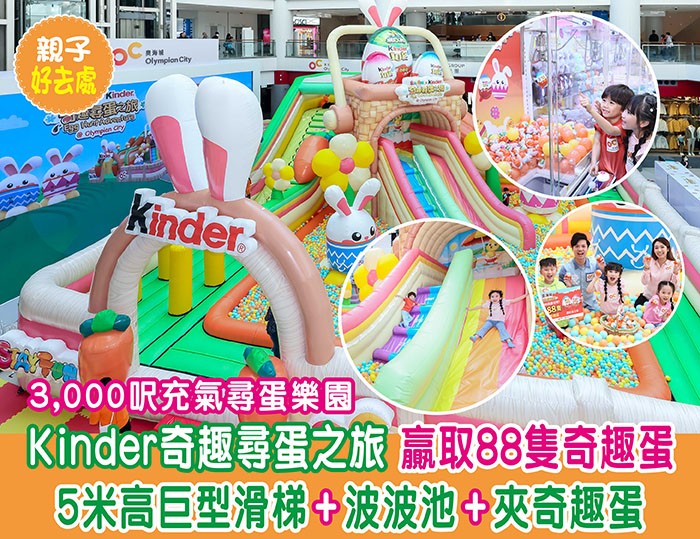 復活節好去處2024|3,000呎充氣尋蛋樂園 Kinder奇趣尋蛋之旅 贏取88隻奇趣蛋 5米高巨型滑梯+波波池+夾奇趣蛋