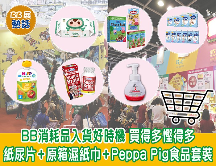荷花BB展2024|BB食品消耗品入貨好時機 買得多慳得多 紙尿片+原箱濕紙巾+Peppa Pig食品套裝