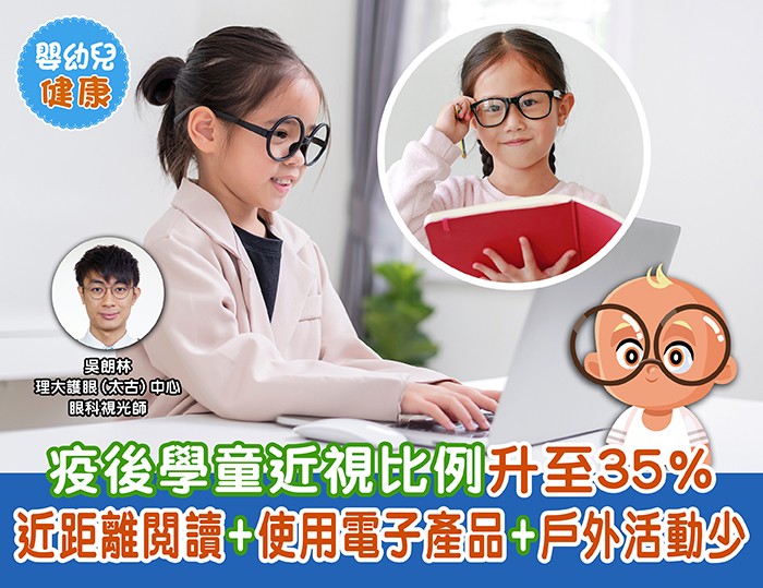 眼睛健康|疫後學童近視比例升至35% 近距離閱讀+使用電子產品+戶外活動少