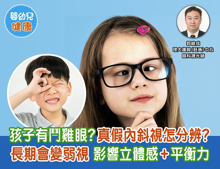 眼睛健康|孩子有鬥雞眼?真假內斜視怎分辨?長期不理會變弱視 影響立體感+平衡力