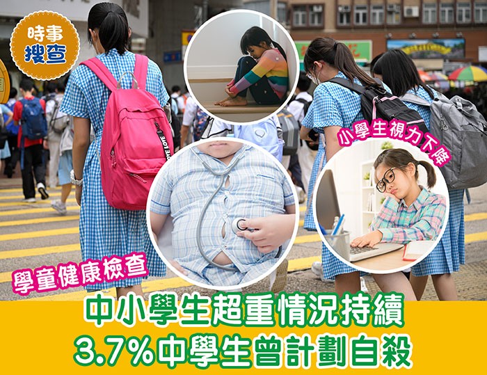 時事搜查|2022/23學年學童健康檢查 小學生視力下降+中小學生超重情況持續+3.7%中學生曾計劃自殺